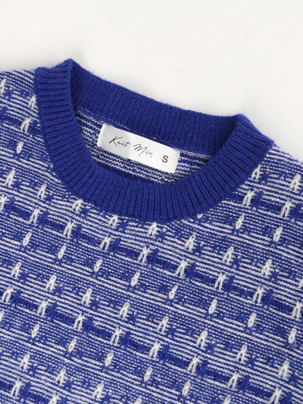 5. Women's French Knit Commuter Top, Knitted Sweater, Geometric Pattern Round Neck Short Sleeve Casual Loose Fit T-Shirt, Spring Summer Fashion