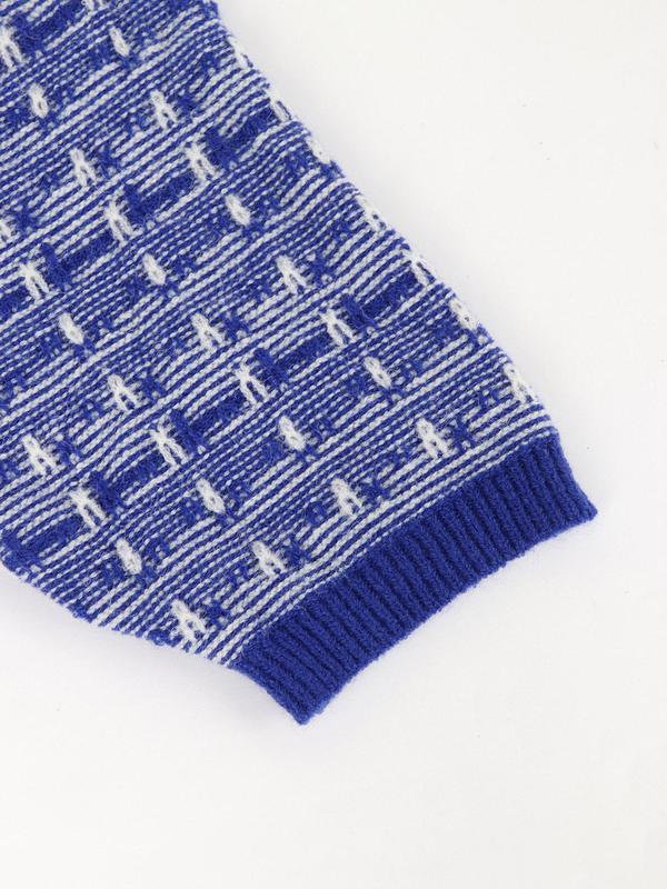 Women's French Knit Commuter Top, Knitted Sweater, Geometric Pattern Round Neck Short Sleeve Casual Loose Fit T-Shirt, Spring Summer Fashion