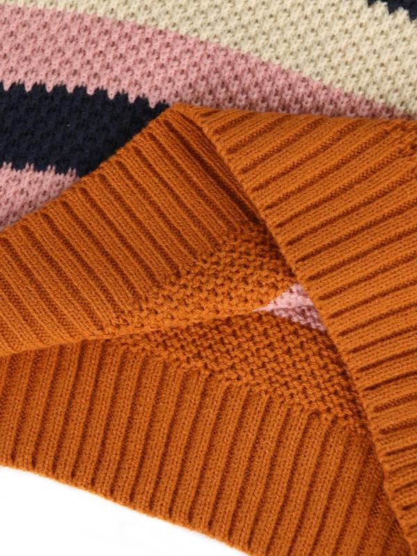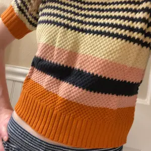 Very cute sweater. The colors are great and the knitting feels surprisingly high quality considering the price. The only thing is it’s very cropped. I’m 120 lbs, 5’4 with a longer torso - When I lift my arms, the hem raises over my bellybutton. My fault for not paying attention to the measurements!