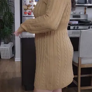 Este vestido tejido realza la figura con su diseño de trenza vertical y cintura ajustada que define perfectamente el cuerpo. Su tela suave y elástica brinda comodidad y un look elegante sin esfuerzo. Ideal para invierno, cenas o fotos aesthetic. ¡Favorece muchísimo!