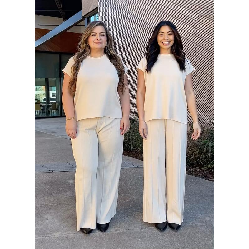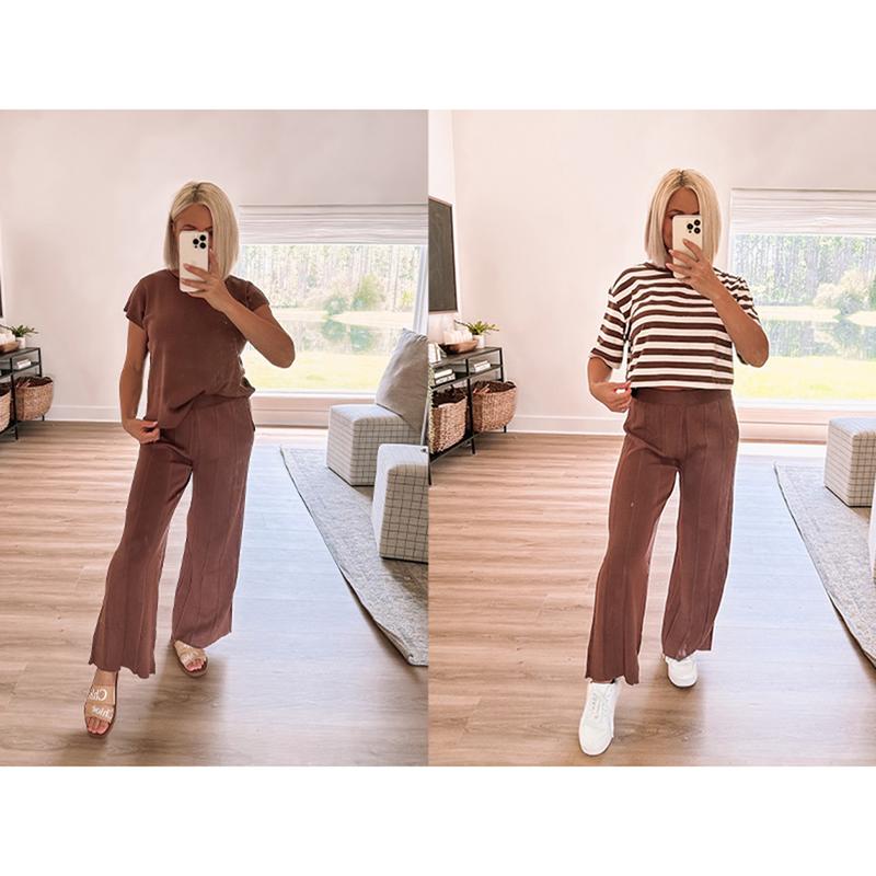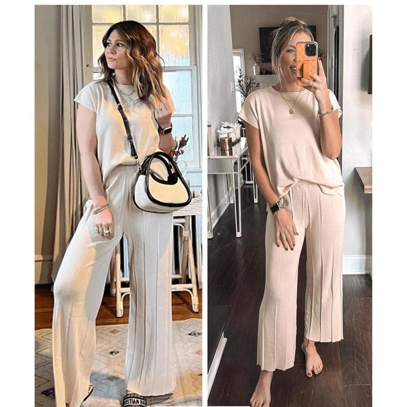 ·Long pants: Elastic high-waisted with the rib-knitted pattern, hit to ankle length, wide-leg pants with pleads, provide a touch of elegance and make all the difference in terms of being able to wear them