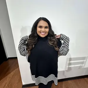 Love the stripes on this sweater. Looks great with leggings, but can also be dressed up.