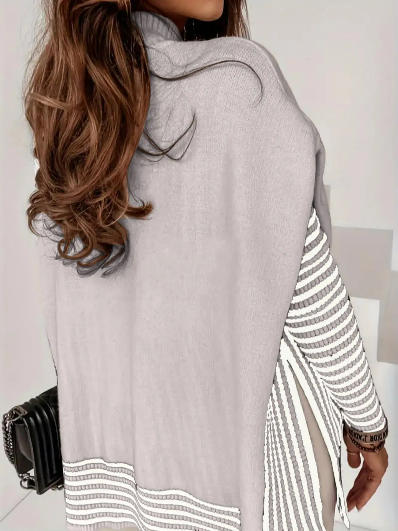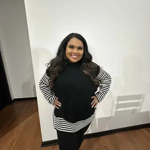 This is such a great fall sweater! I love that it looks like two pieces. Material is so nice and warm! I love the slits on the side, great for people with bigger hips like me. Modest friendly, hides my but. Pair with some boots and black leggings or jeans and some heels!