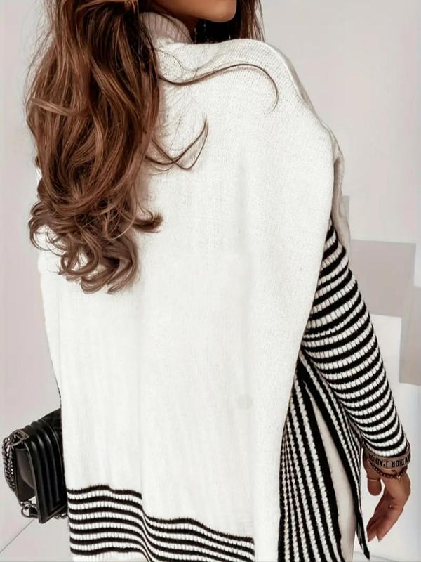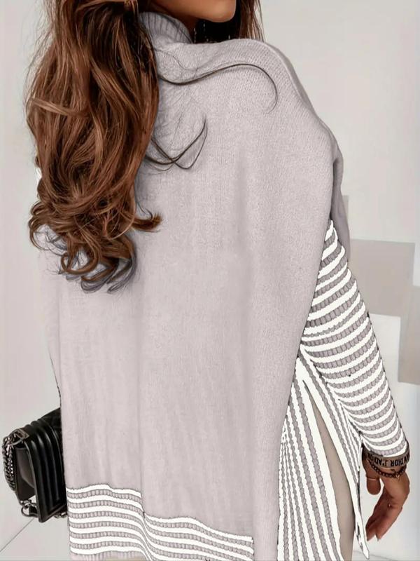 Great sweater, and long enough to wear comfortably with leggings. Slit on side is a little longer than expected but I pinned it a little.