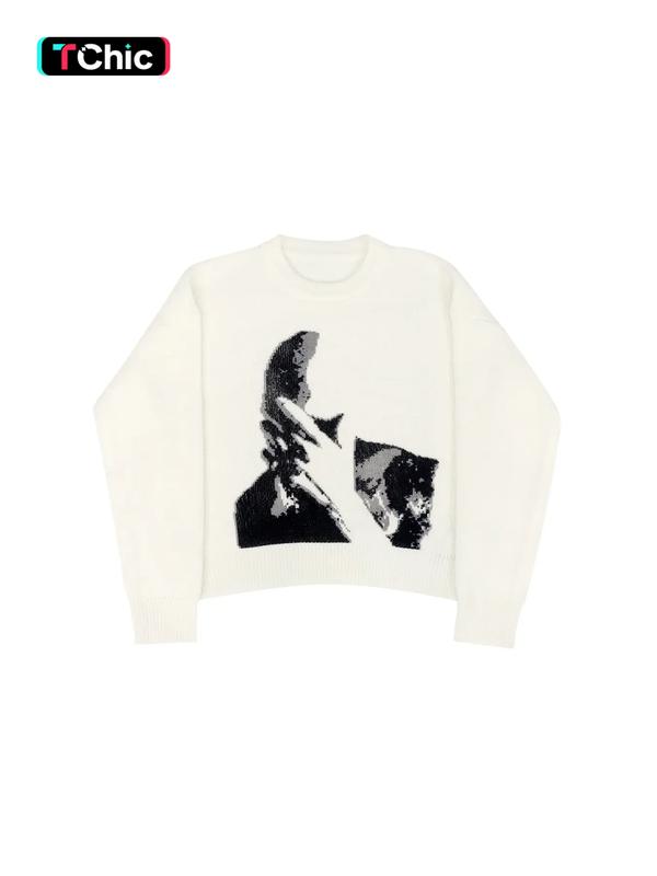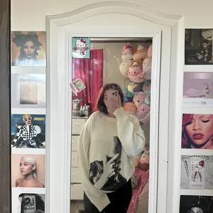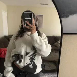 The sweater is just like the picture the print is exactly like the picture I could’ve gone a size down tbh it’s on the baggier side. My only issue is I wore it for one day and the threading was already coming loose so beware of that if I could fix it I would but that’s the only issue