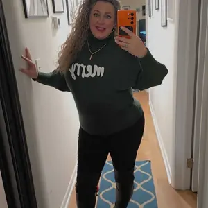 Absolutely love this sweater!!! You can dress it down with jeans or dress it up with a cute skirt and boots!! It was perfect for our family Christmas Party!