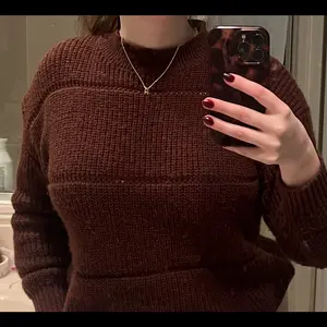 Collar is a little higher on neck. The lines in sweater are sea through some. Brown color is accurate. Size is true to size.