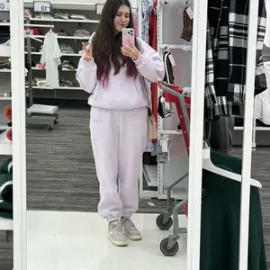 Shape and size: I’m 5’1, 106lb, I got kids L hoodie & XL sweats & they both fit PERFECT. The hoodie stops exactly at the right spot so it doesn’t drench over the sweats