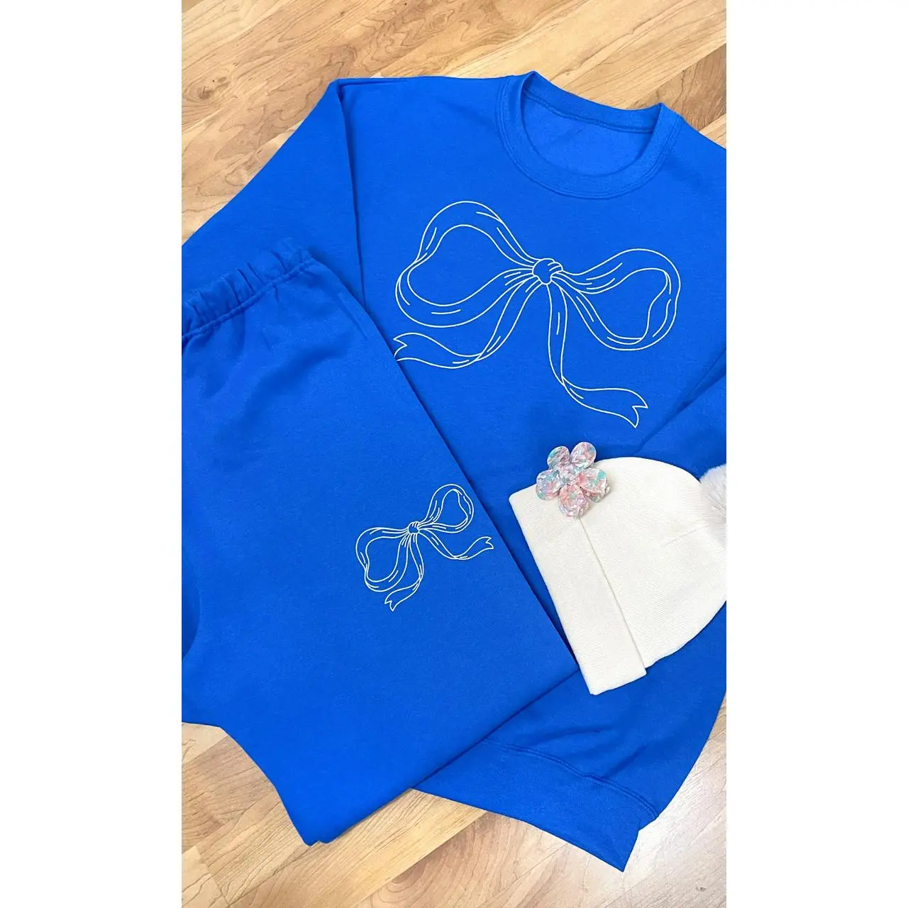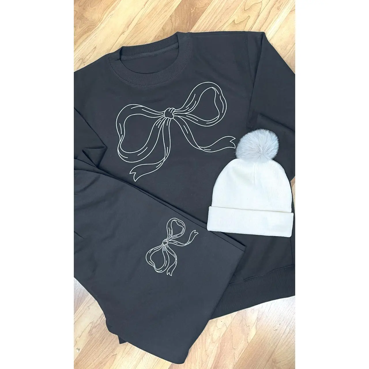 ·These graphic sweatpants' design features simple and elegant white line art depicting a ribbon bow. They are perfect for everyday wear!