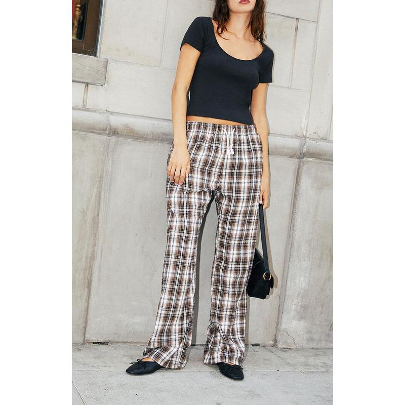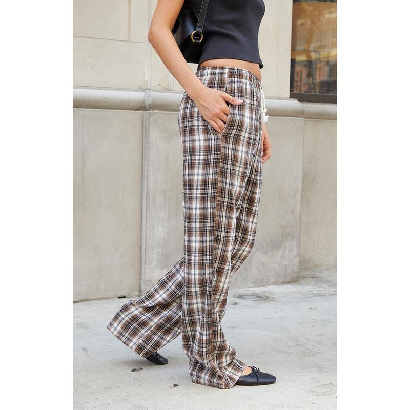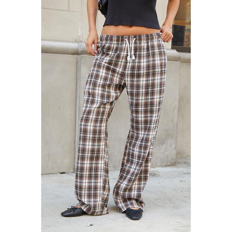 Lounge around in total comfort this season in the new John Galt Brown Plaid Anastasia Sweatpants. These classic high-rise sweatpants come in an updated plaid pattern and feature an elastic waistband for the perfect fit, side pockets, and a wide relaxed leg.