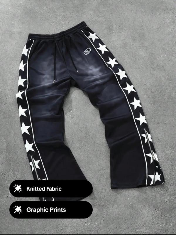Men's Star & Letter Print Drawstring Waist Sweatpants, Casual Comfy Loose Jogger Pants for Daily Wear, Fashion Men's Bottoms for All Seasons, Casual Sports Trousers