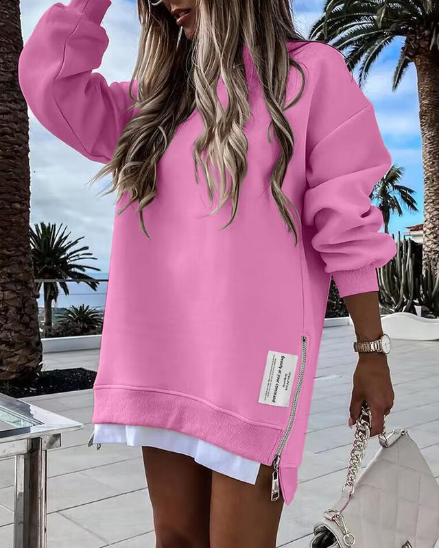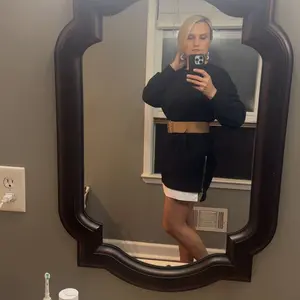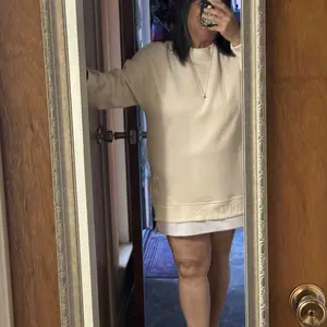 Finally broke down and ordered this zippered sweatshirt dress. I got an xl and I should have ordered a L but I read lots of reviews about sizing up. Since I am so short it really does fit like a dress. Love it. Might order a large and compare.
