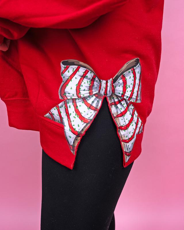 This Side Bows Cakes and Bows Sweatshirt is the perfect blend of cute and preppy style for the holiday season.