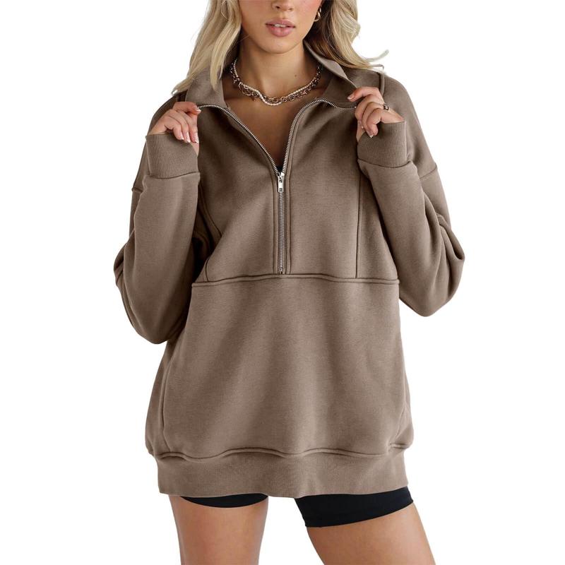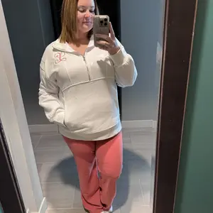 Love this half zip sweatshirt.. color is beautiful very comfortable and so soft.. size down .. does run big.