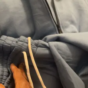This set was very nice the only thing that should have been done was to match the pant draw string with the zipper on the top. I switched it and it looks much better. Typical sweat suit material.