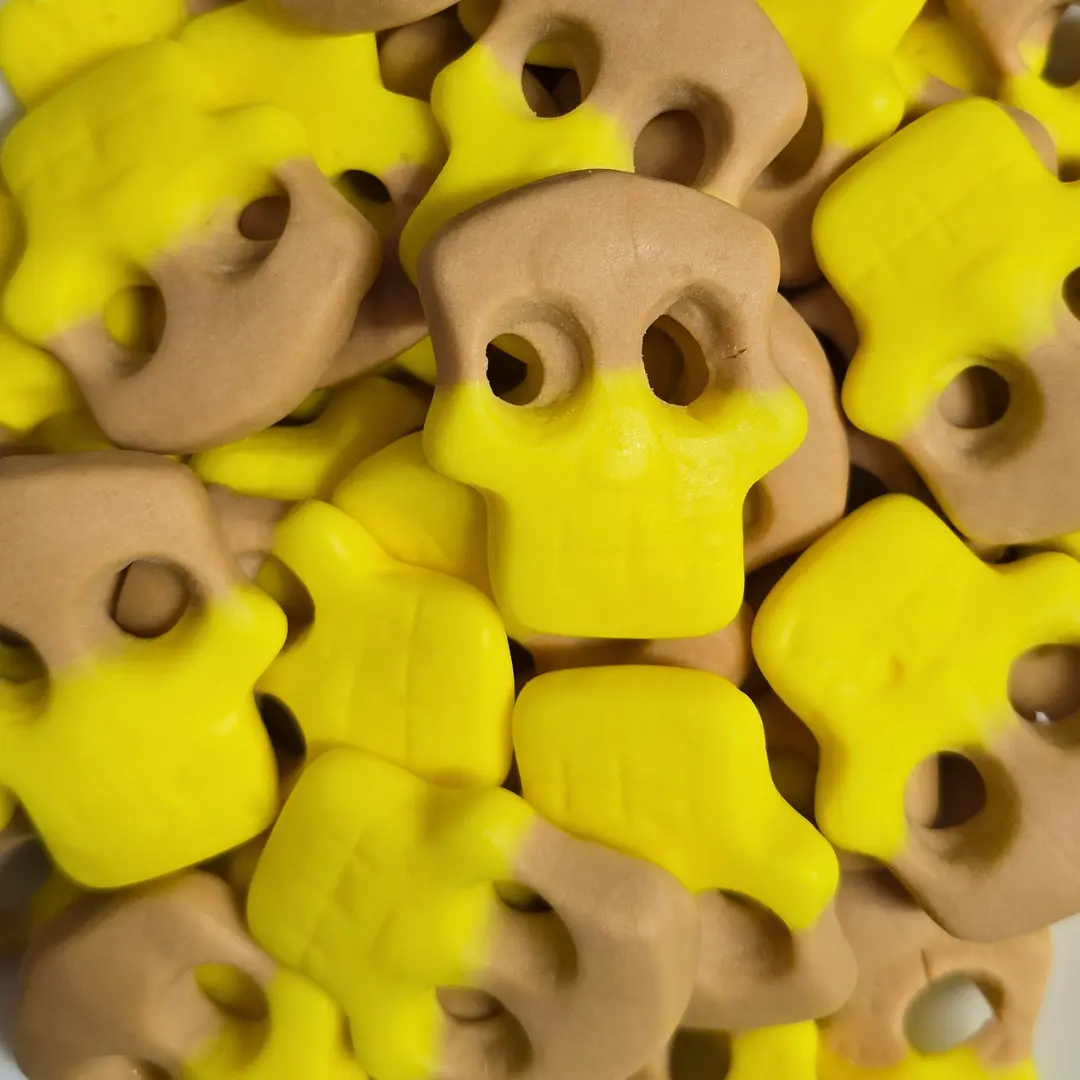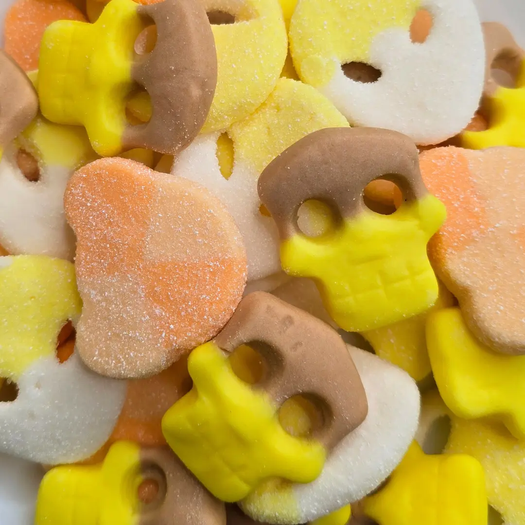 ·The mix includes banana toffee skulls, sour passionfruit aliens and sour mango bears.