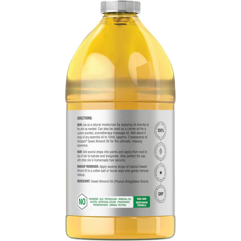 Horbäach Sweet Almond Oil 64 fl oz | for Hair and Skin | Cold Pressed & Hexane Free | Bulk Size Carrier Oil | Vegan, Non-GMO, Cruelty Free