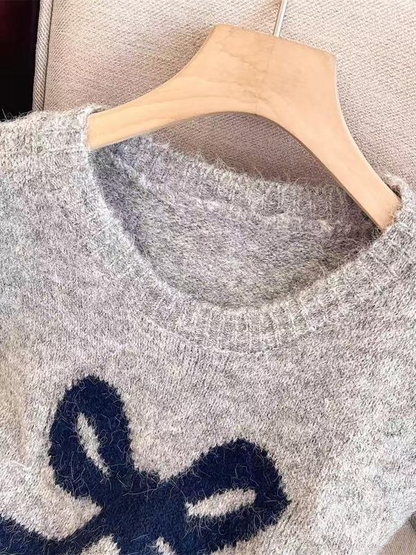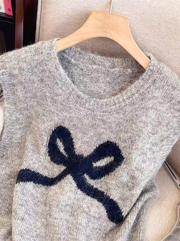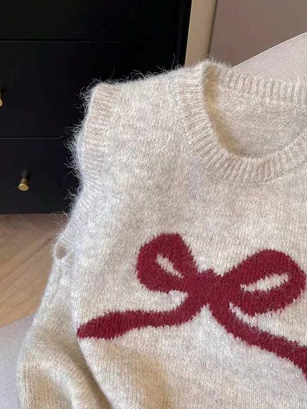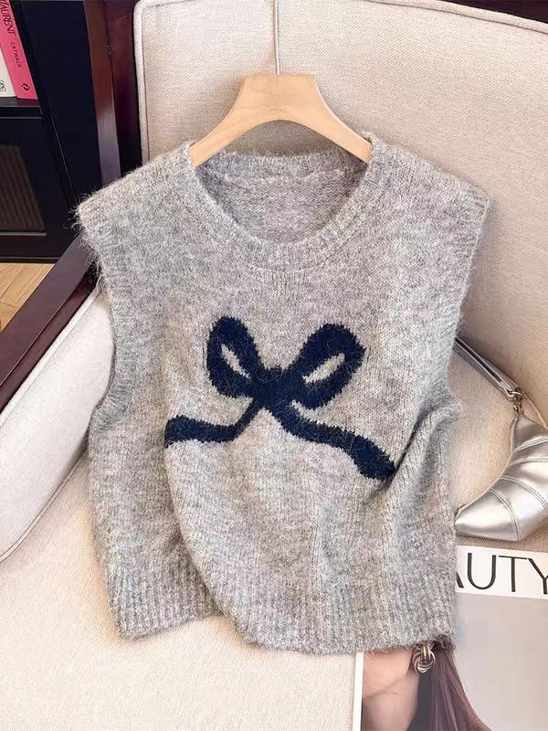 5. Sweet Bow Vest Knit Sweater, Autumn Winter Embroidered Pattern, Slim Fit Layered Wear, Soft Comfortable Sleeveless Top, Elegant Casual Style