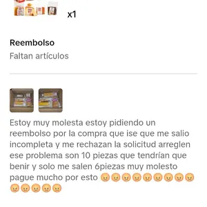 Dise 10 snack solo te mandan 6 y tecobran por las 10 Muy molesta con mi compra no rrecomiendo comprar estos Snack no te mandan lo que se be en la foto todo es diferente ala foto y solo sale 1 pan triangulo de fresa y los demás son muy chicos y dise 10 snack y solo salen 6 y no te dan el reembolso 🤬