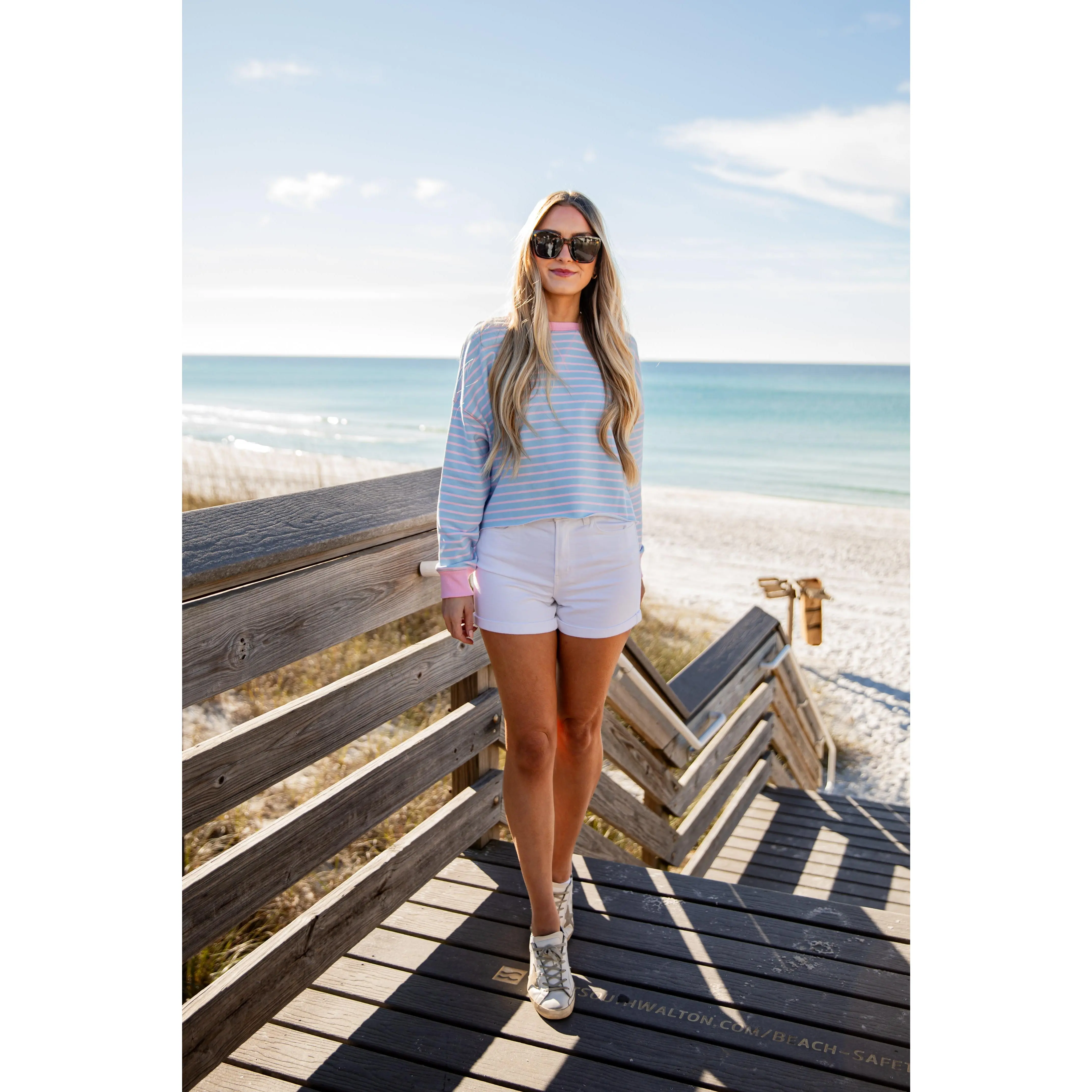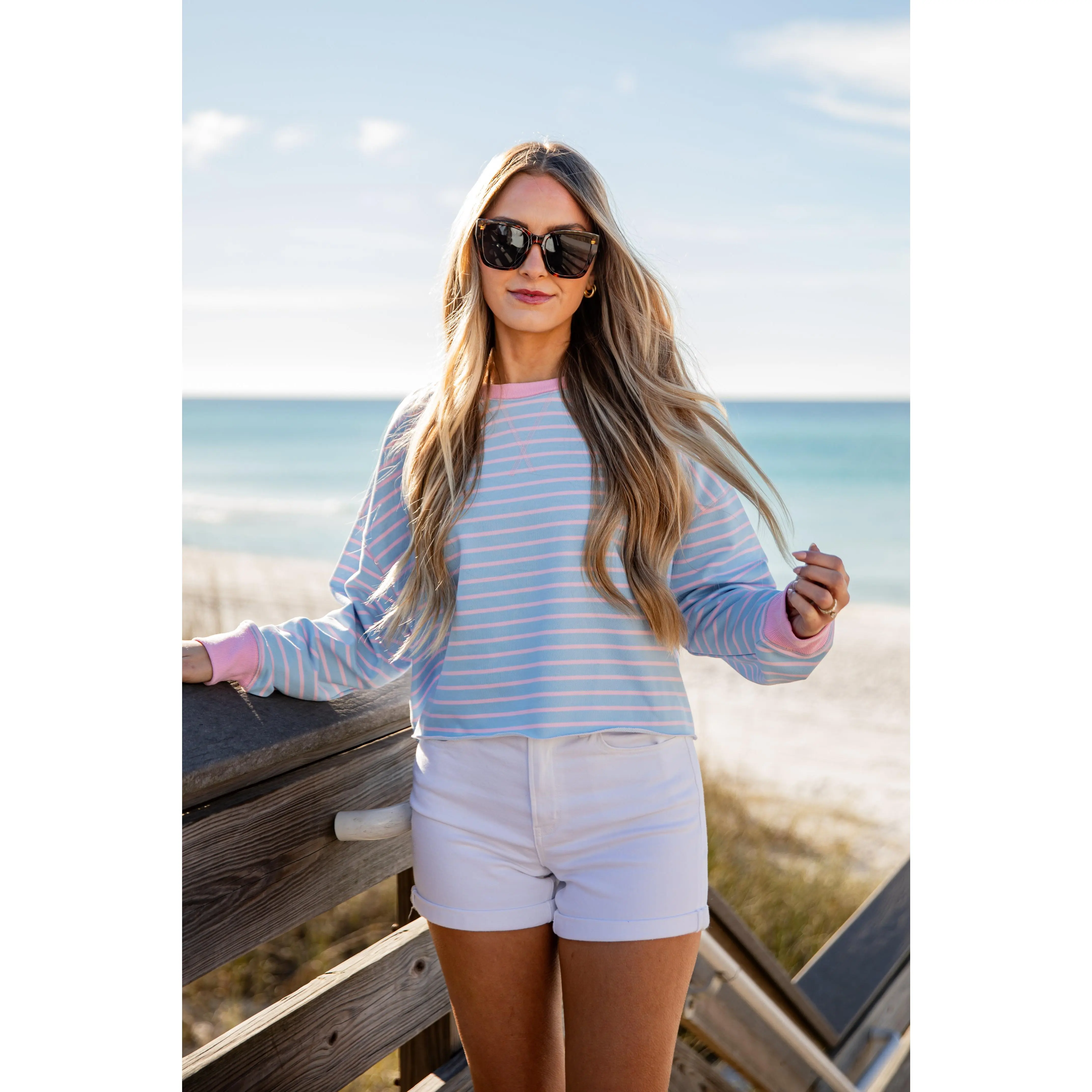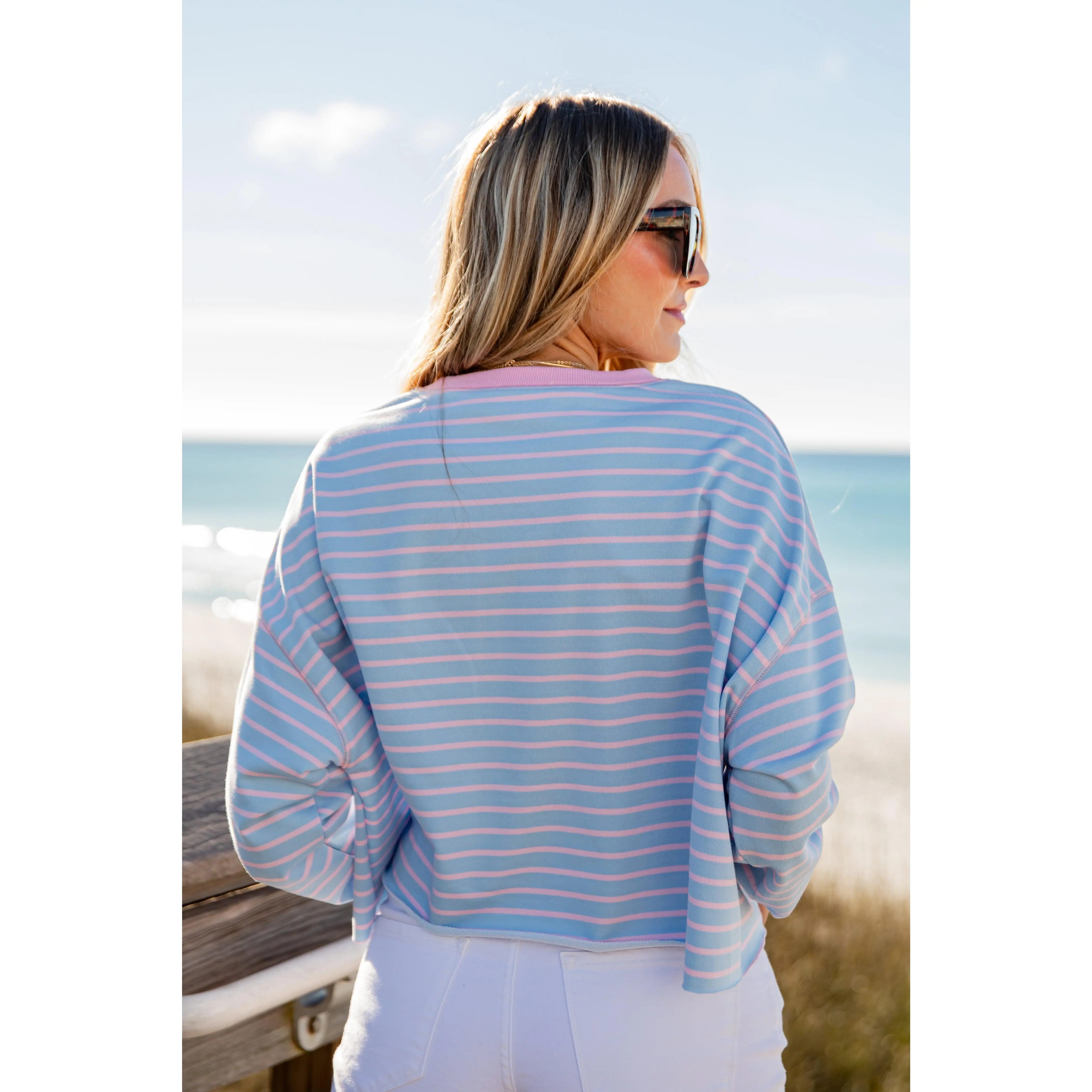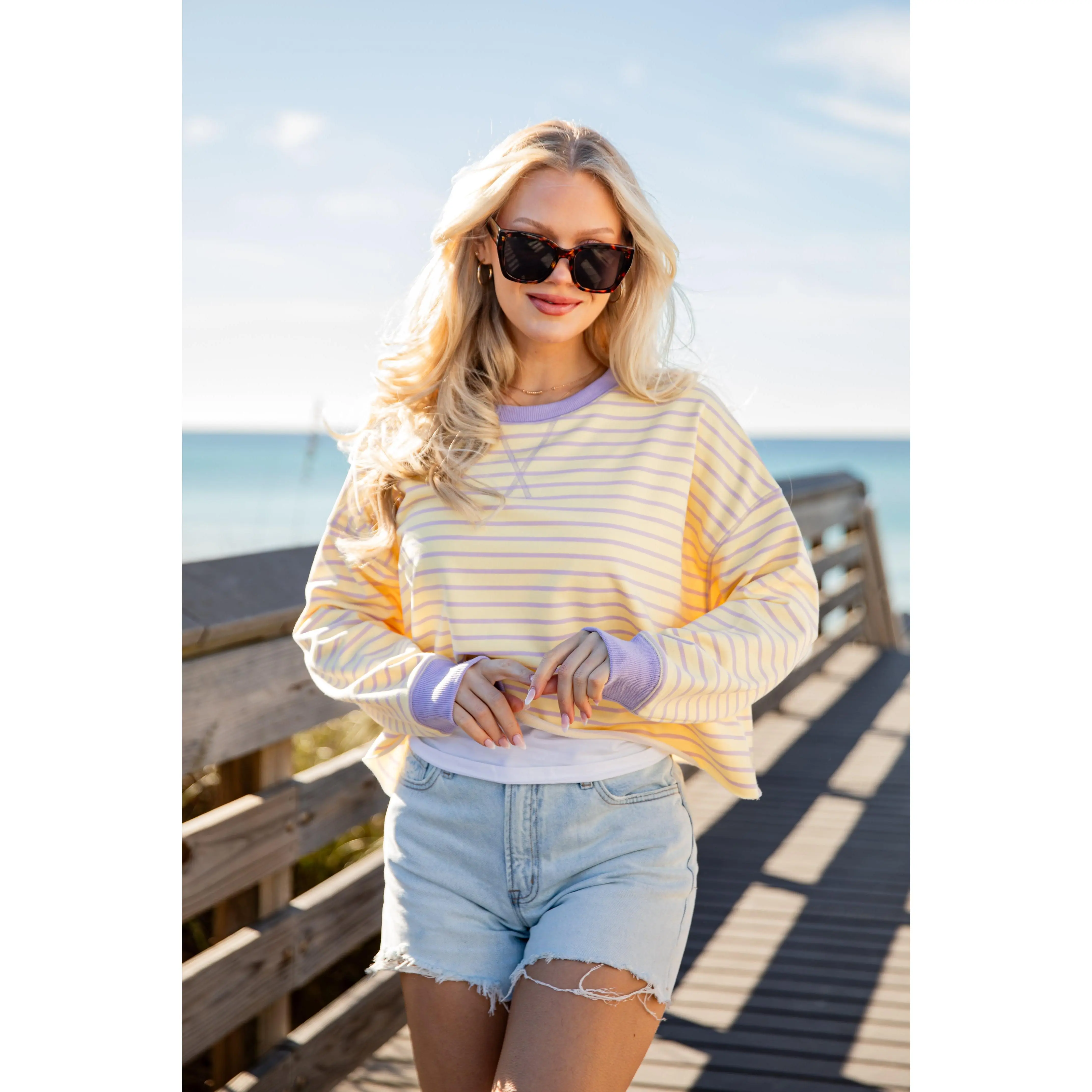 Brighten up your wardrobe with the Sweet Horizon Stripe Cropped Pullover! Featuring horizontal stripes, this cozy knit top brings a playful pop of color to your everyday look. Designed with a relaxed cropped fit, ribbed neckline, and long sleeves, it offers a flattering silhouette that pairs effortlessly with high-waisted jeans, joggers, or lounge shorts. Lightweight yet warm, this pullover is perfect for transitional seasons and casual-cute styling. Comes in 2 Colors.