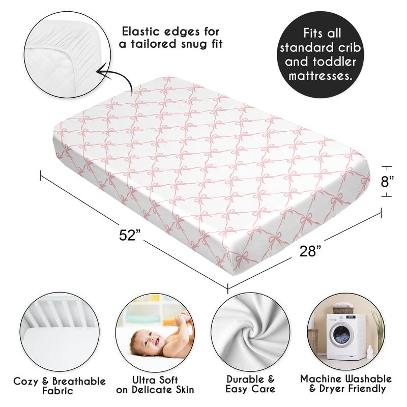 5. Sweet Jojo Designs Fitted Baby Satin Crib Sheets (Pink Bows) for Girls, Infant Nursery, Toddler Room - Standard Size (Blush and White Bow for the Ballerina, Ballet Dancer, Princess Collection)