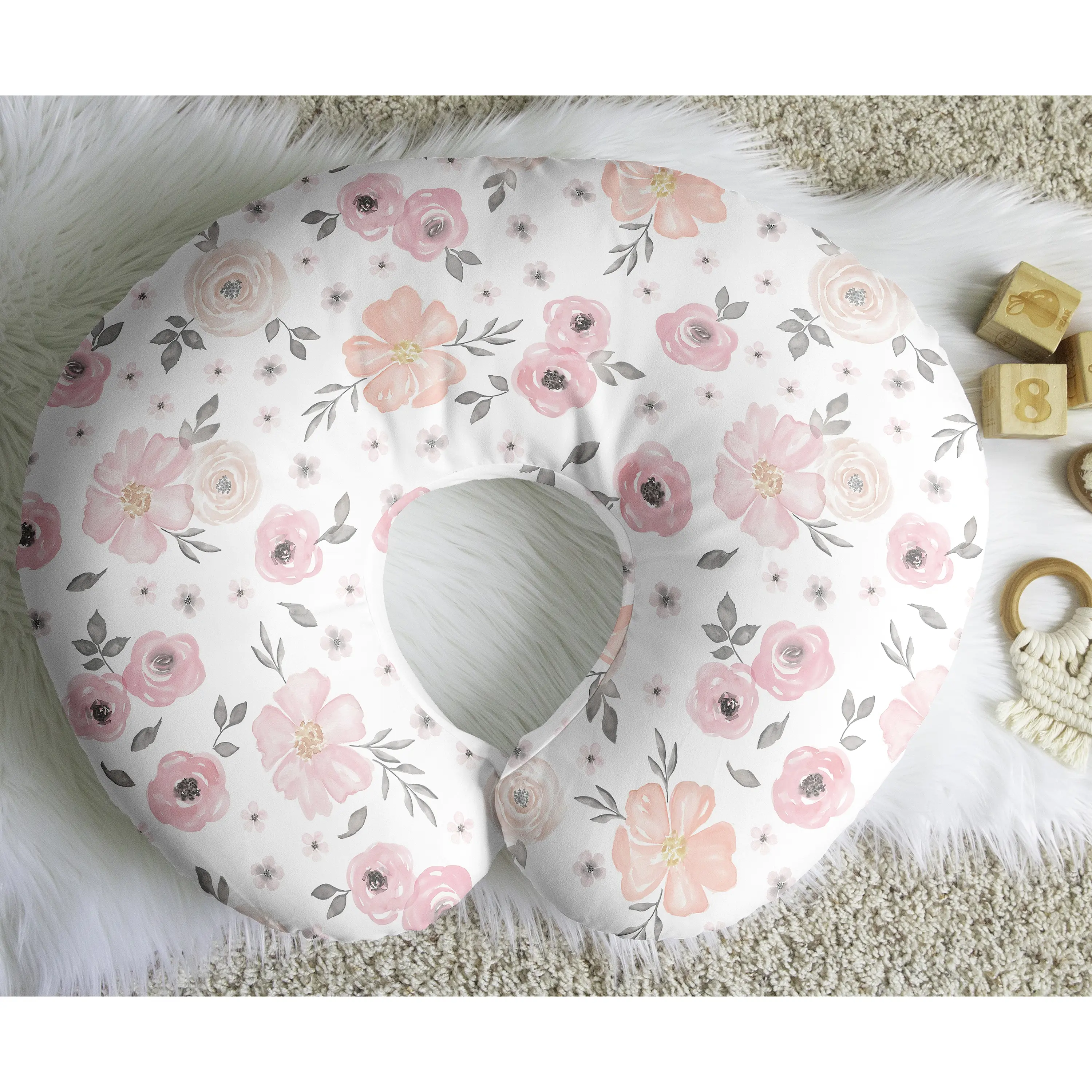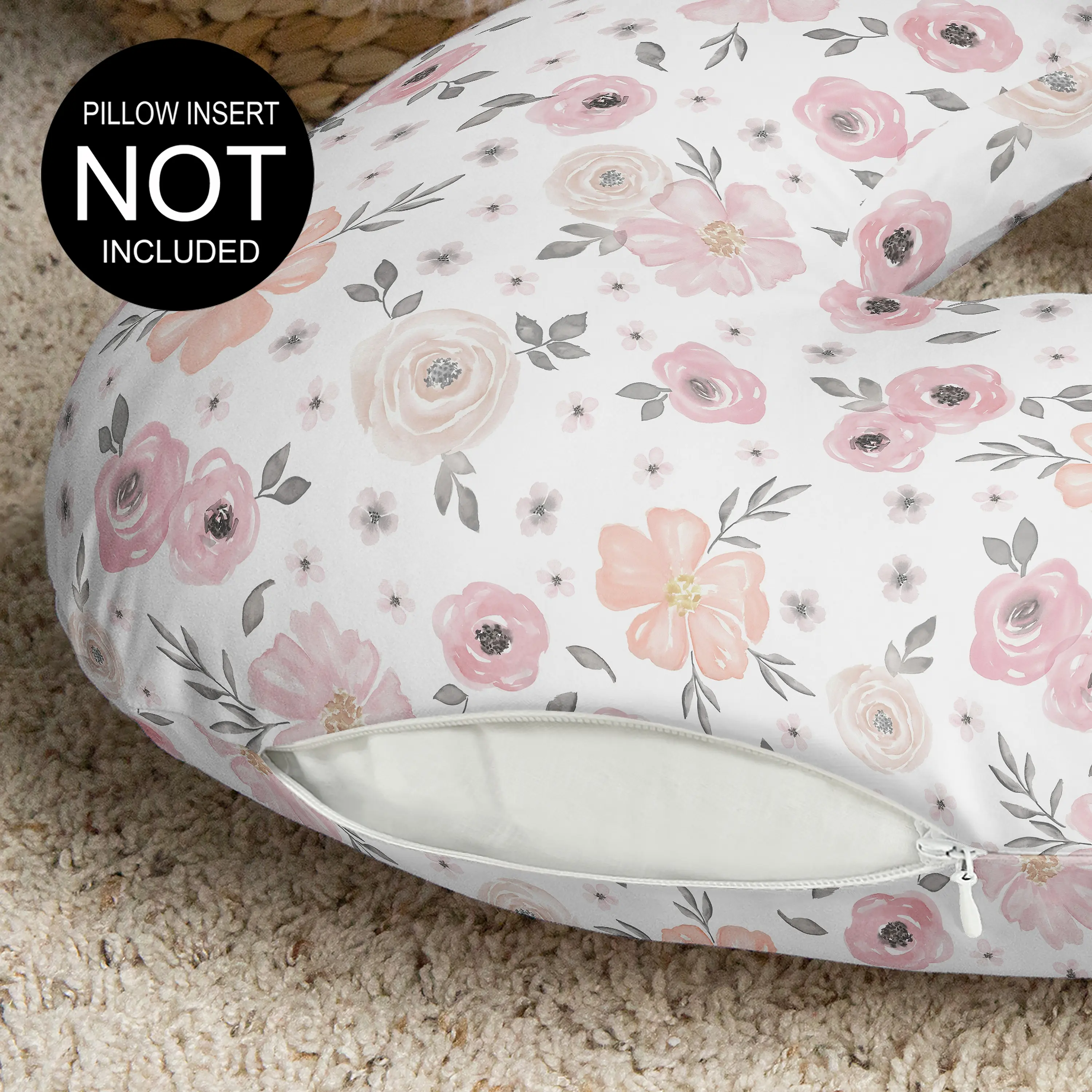 Sweet Jojo Designs Baby Nursing Pillow Cover (Pink/Grey Boho Floral) for Girls, Infant/Newborn Nursery, Bottle Breastfeeding Slipcover, Breast Feeding Pillowcase - Pillow NOT Included (Watercolor)