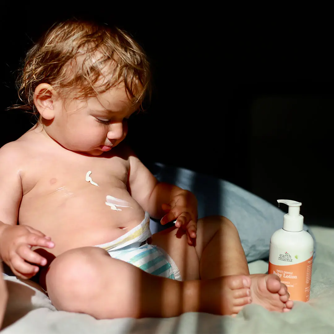 My youngest has the most sensitive skin and this lotion is perfect for her. It's moisturizing, light and not overly scented. It has just the right amount of orange to pair perfectly with her orange baby soap!