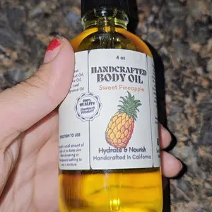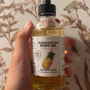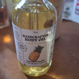 This is a great quality body oil for a fair price! It smells exactly like pineapple, best of all no seed oils or anything toxic. Plus it's the only thing I've been able to moisturize my very dry hands with, I love it❣️💯