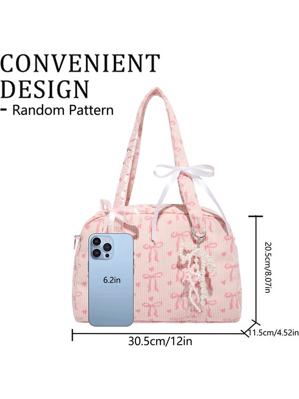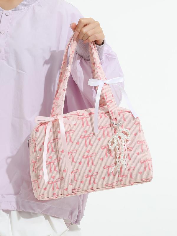Valentine's Day gift, niche design sweet pink velvet shoulder bag, corduroy butterfly bow with pearl pendant armpit bag, Fashionable shopping purse, cute, multi-functional, suitable for students commuting, shopping, etc.