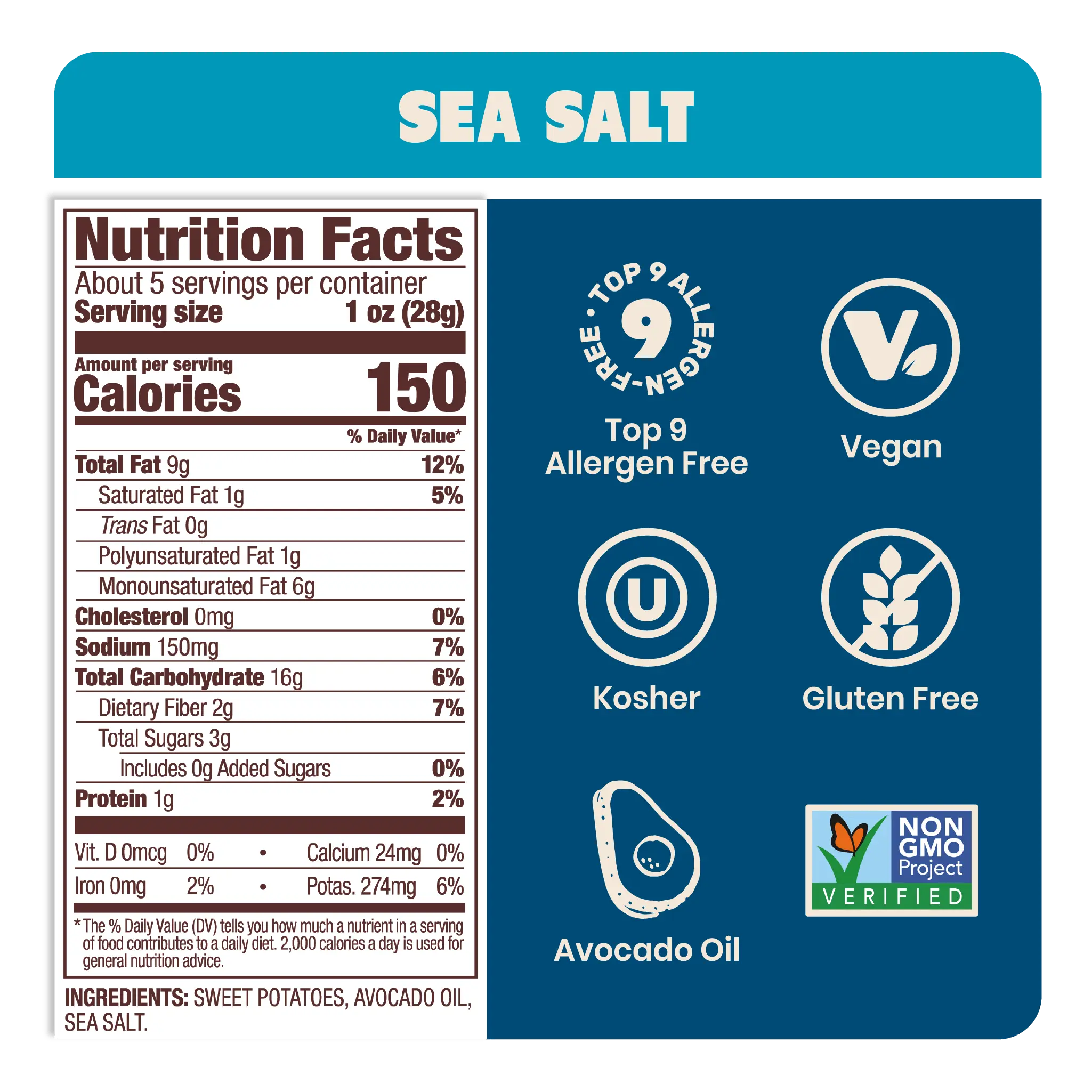 5. Sea Salt Sweet Potato Chips in Avocado Oil 5oz (Pack of 8) Allergen-friendly, Gluten Free, Peanut Free, Vegan - Shark Tank Product