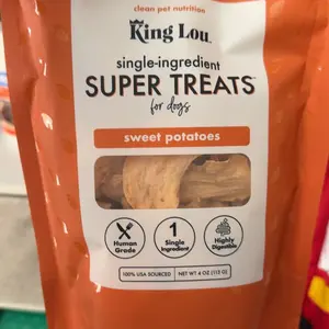 We have bought other sweet potato treats in the past and they have been gummy and my dogs didn’t like them. These King Lou sweet potato treats are crunchy, perfect thickness and size! We are happy and will definitely be buying again!