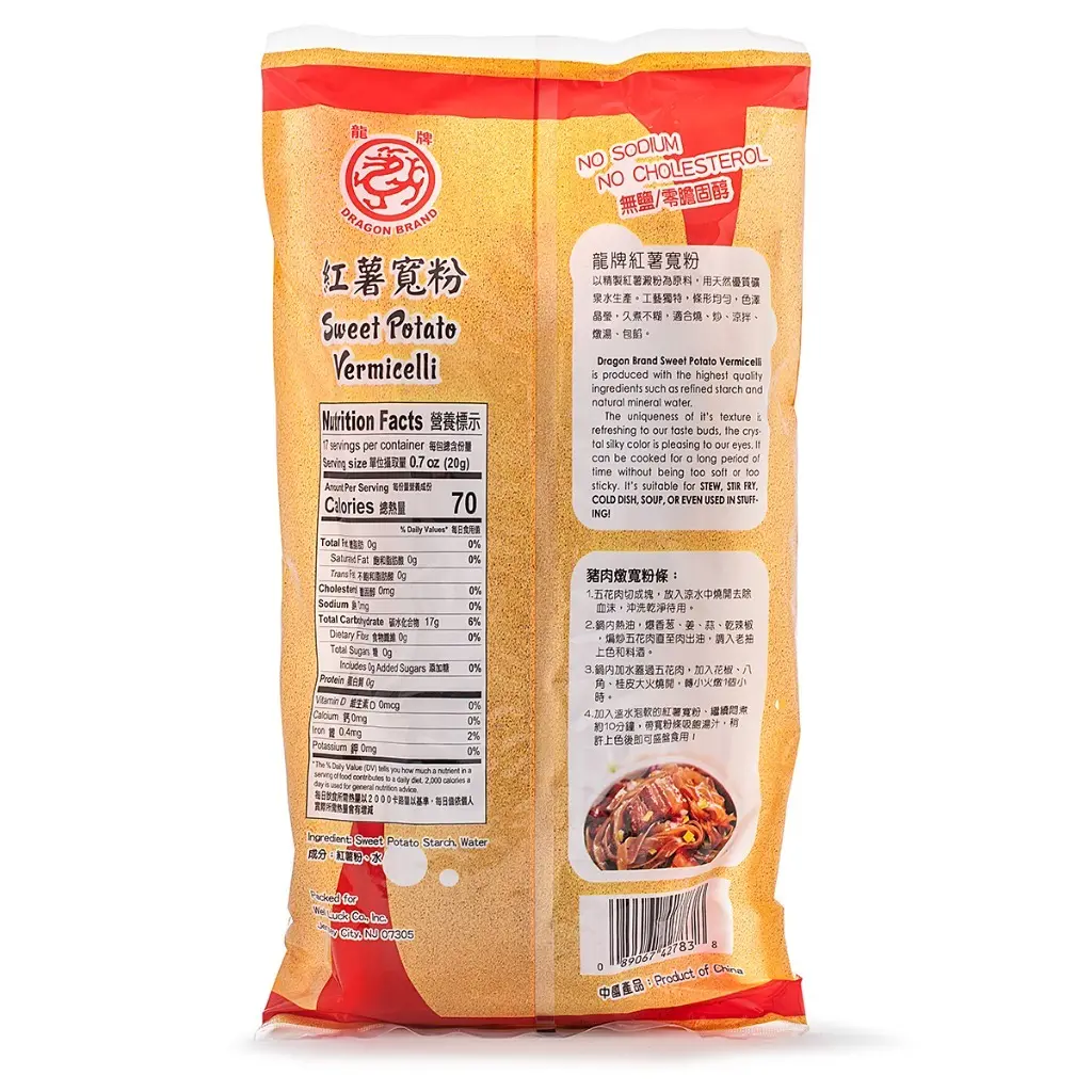 Sweet Potato Vermicelli 12 oz is a delicious and convenient food option that is perfect for hotpot. The soft and chewy texture of the vermicelli makes it easy to eat and digest, while also providing a unique texture to the dish. The sweet potato vermicelli is a great addition to any hotpot dish, adding a unique and flavorful texture to the dish.
