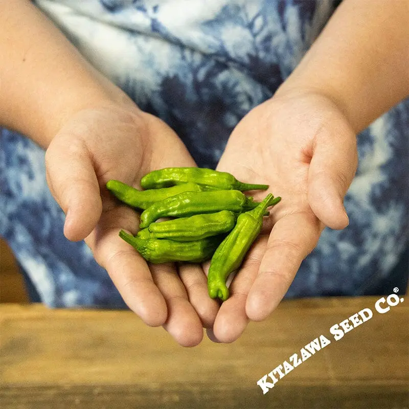 60-80 Days to maturity. Capsicum annuum var. grossum. Organic Shishito Sweet Pepper Seeds. Non-GMO, heirloom, open-pollinated, organic, cool weather annual. This thin-skinned and sweet pepper is popular in Asian market. It is reported that 1 in every 10 peppers has a spicy flare. It has quickly spread in popularity, leading many to grow it at home. Considered to be a high yielder, the plants produce many peppers which can be used for a variety of culinary uses for its smoky flavoring perfect as the main star in any grilled dish. ~5,000 seeds/oz.