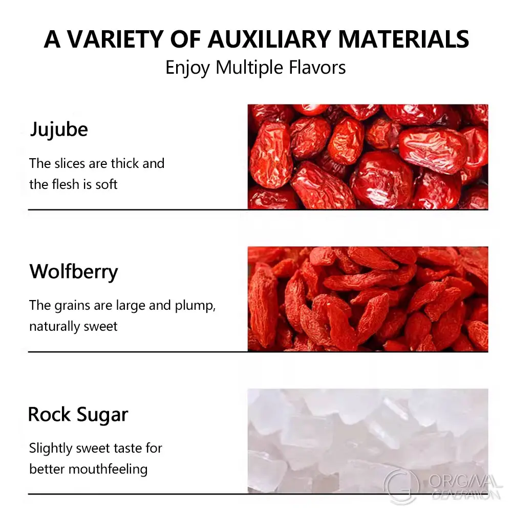 Ingredients:osmanthus,snow fungus,rock sugar,jujube,wolfberry,sticky rice