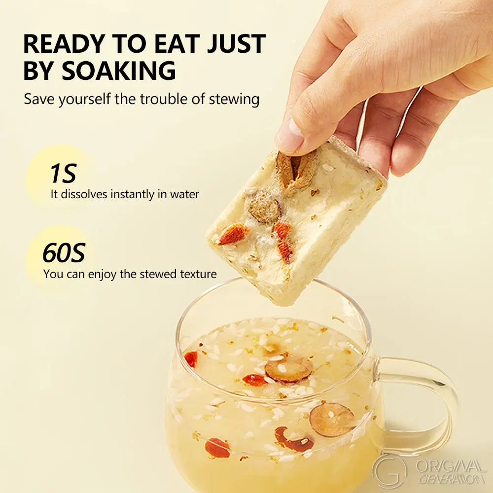 Perfect breakfast with warm water for brewing. Made of glutinous rice.