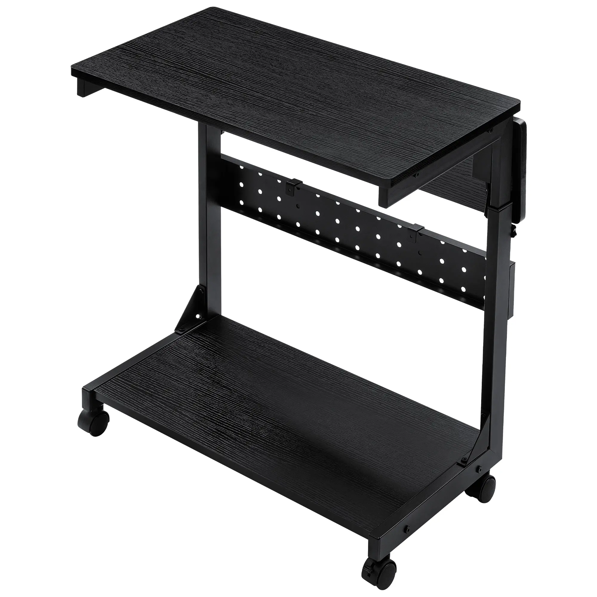 ·Multifunctional Design: Efficient 2-tier design, the bottom shelf stores the computer tower while the top shelf holds printers, smaller PC, mixer, plants, documents, and magazines. Pegboard and S-shaped hooks on back organizes office supplies such as power strips, etc. Mouse pad included, this CPU stand can be used for mouse operation & comfortable arm rest. Can also be used as mobile laptop stand or rolling computer desk that allows you to settle into any place for work like bed and sofa.