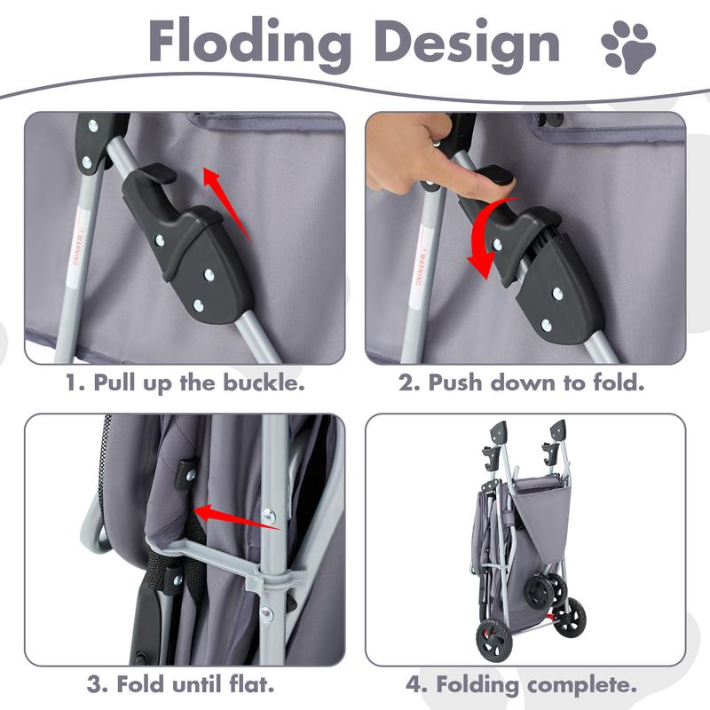 ·[Foldable & Compact] This foldable dog stroller can be quickly collapsed for easy storage in tight spaces like your car trunk or closet, making it an ideal option for travel and those with limited storage.