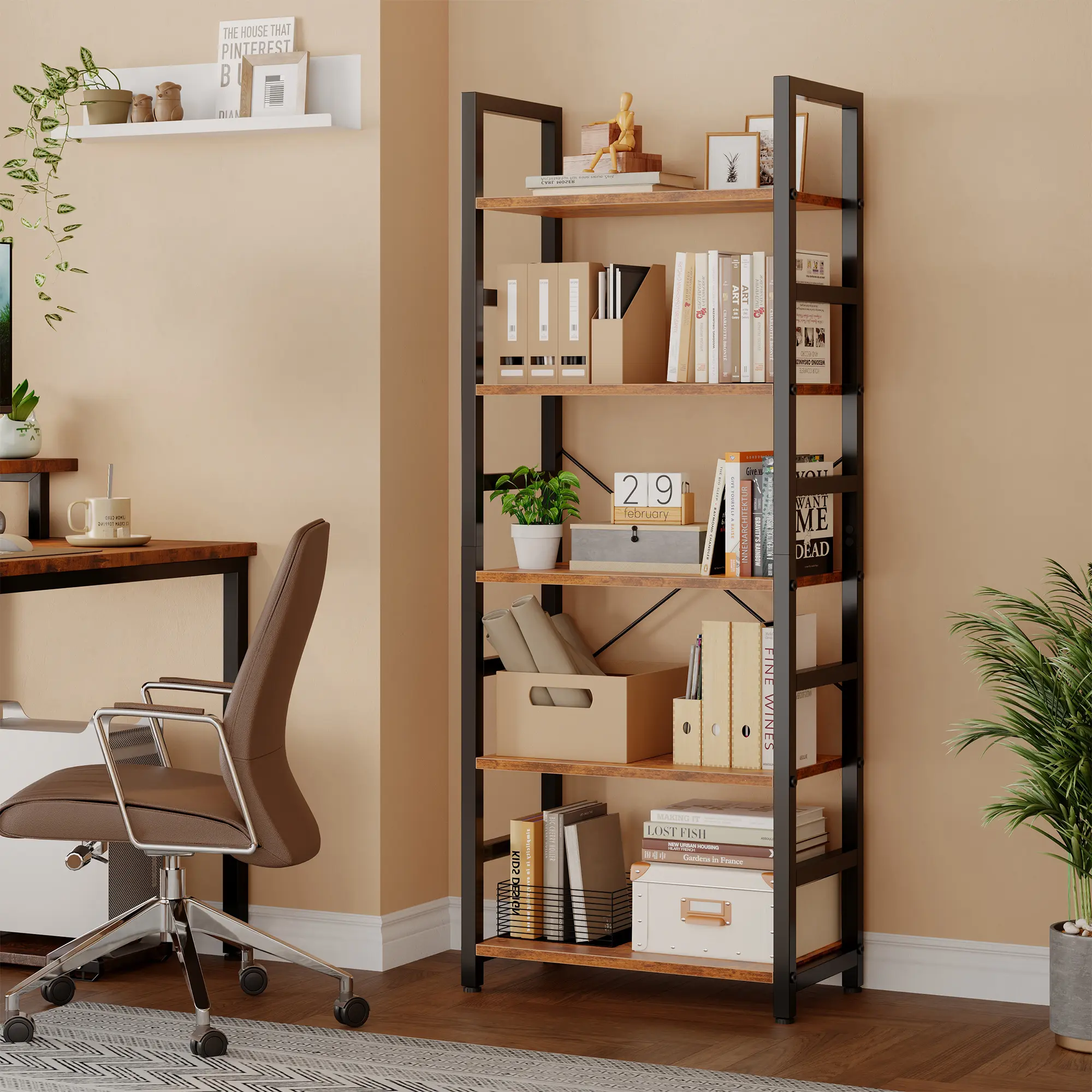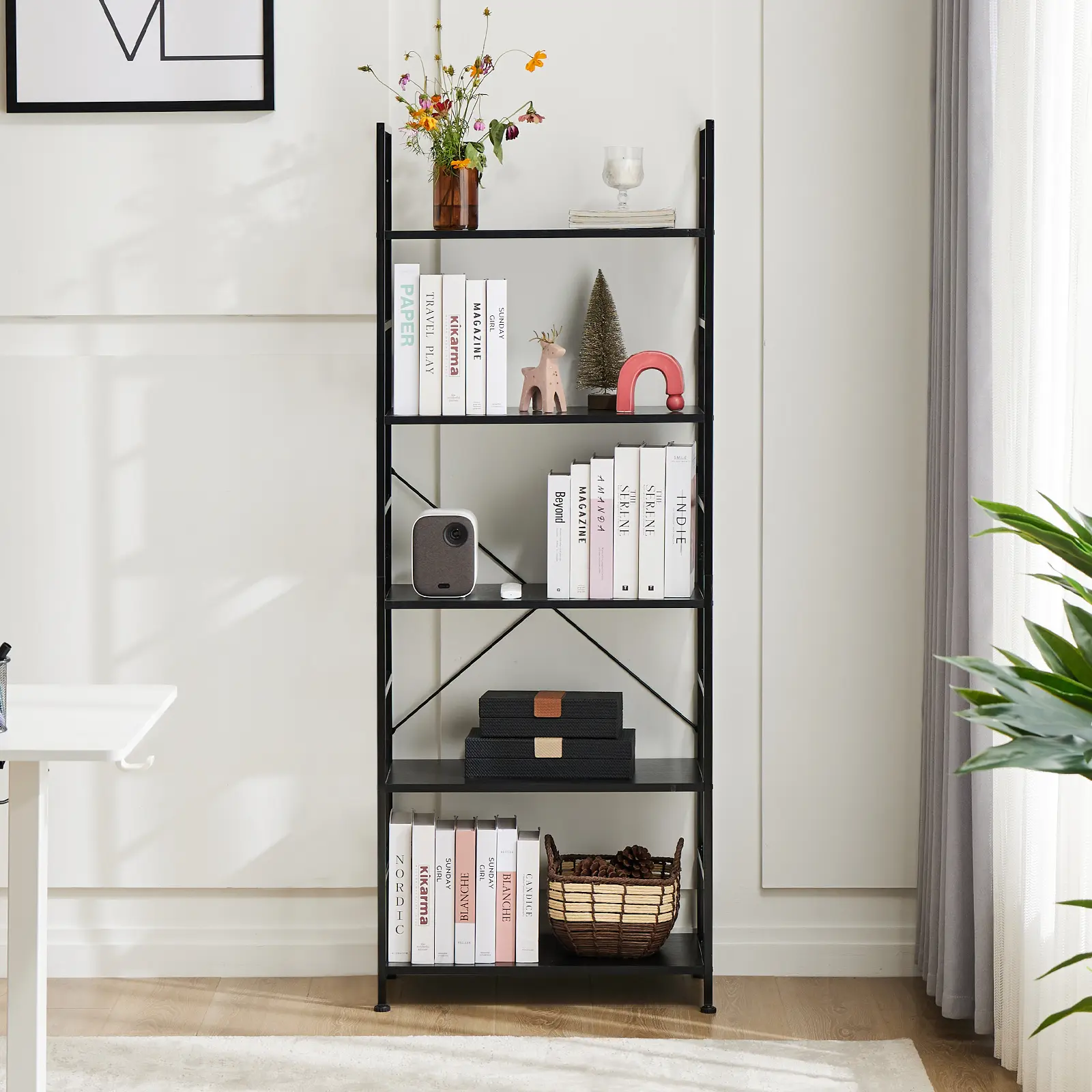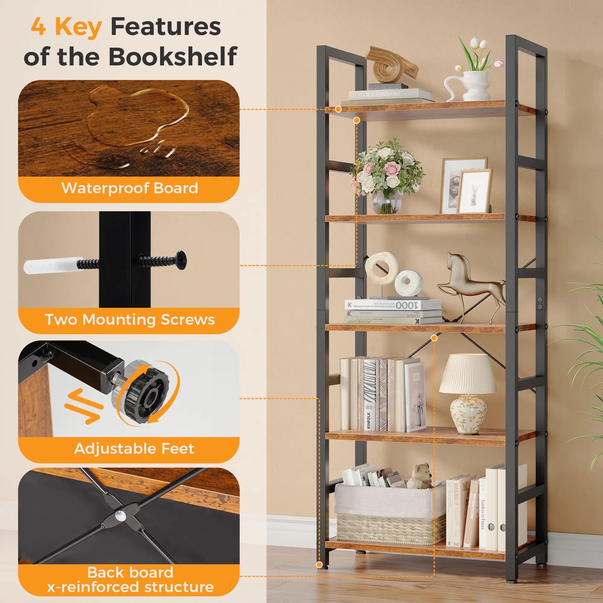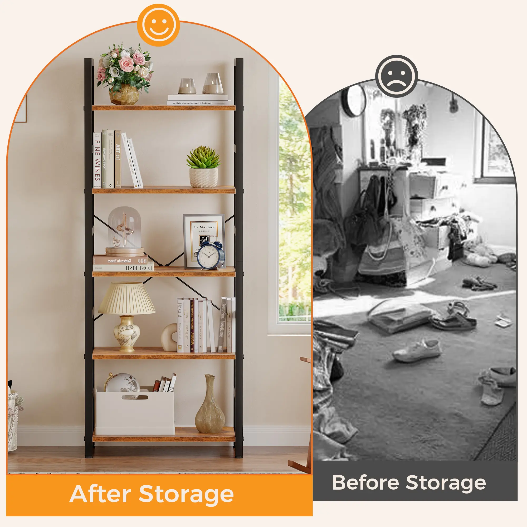 All necessary accessories, tools, and illustrated instruction will be packed. You can finish the whole installation effortlessly and quickly. This functional bookshelf can act as a bookshelf, plant shelf, or display shelf in living room, bedroom, study, entrance, hallway, office, etc. 📚