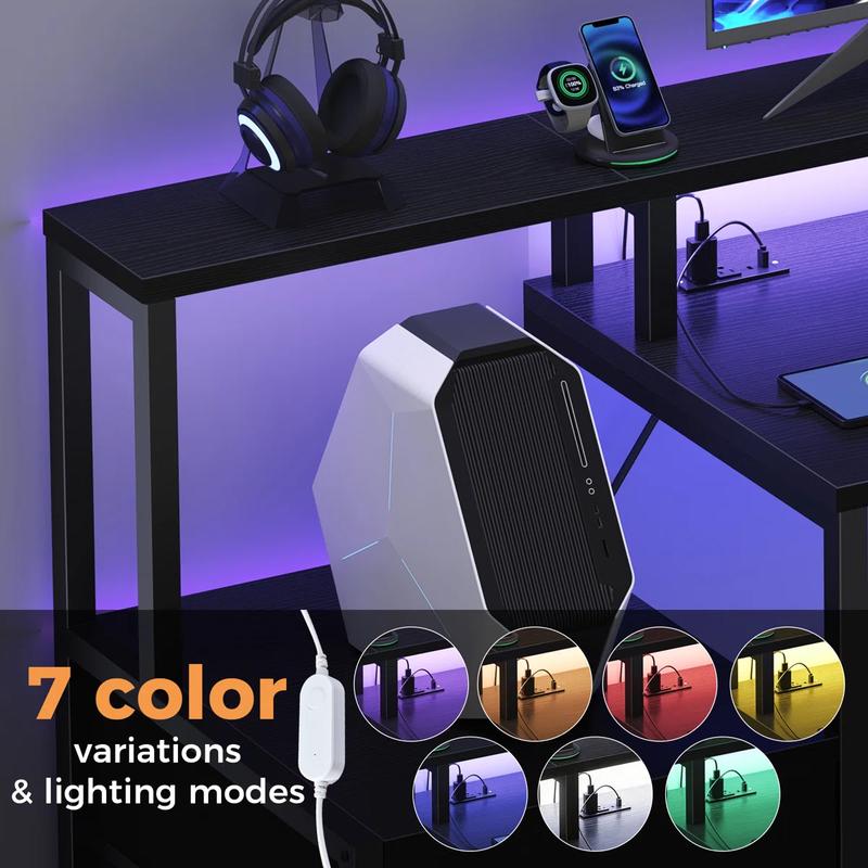 ·RGB LED Lights: The desk with LED lights offers 7 color variations & lighting modes. You can set the perfect gaming atmosphere.