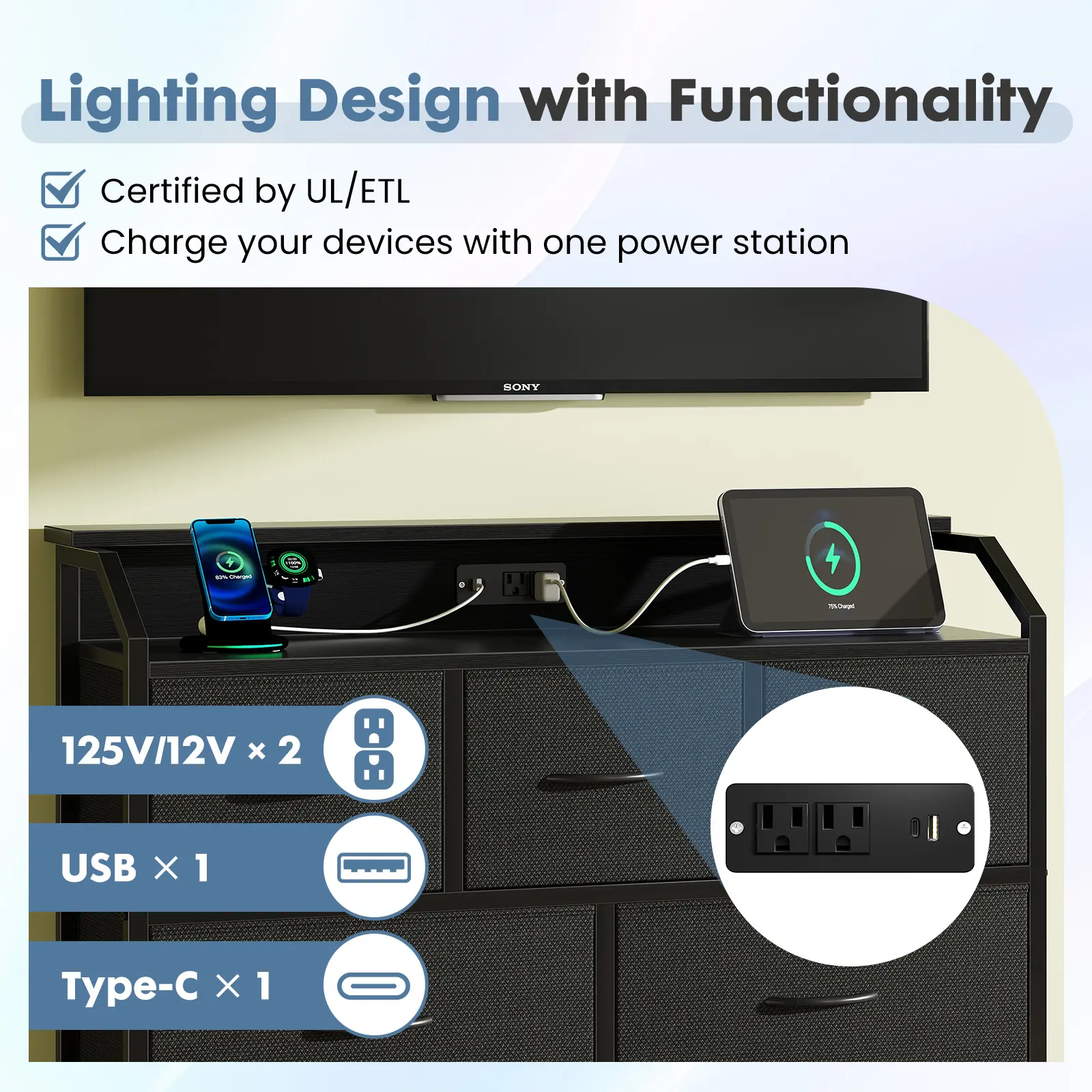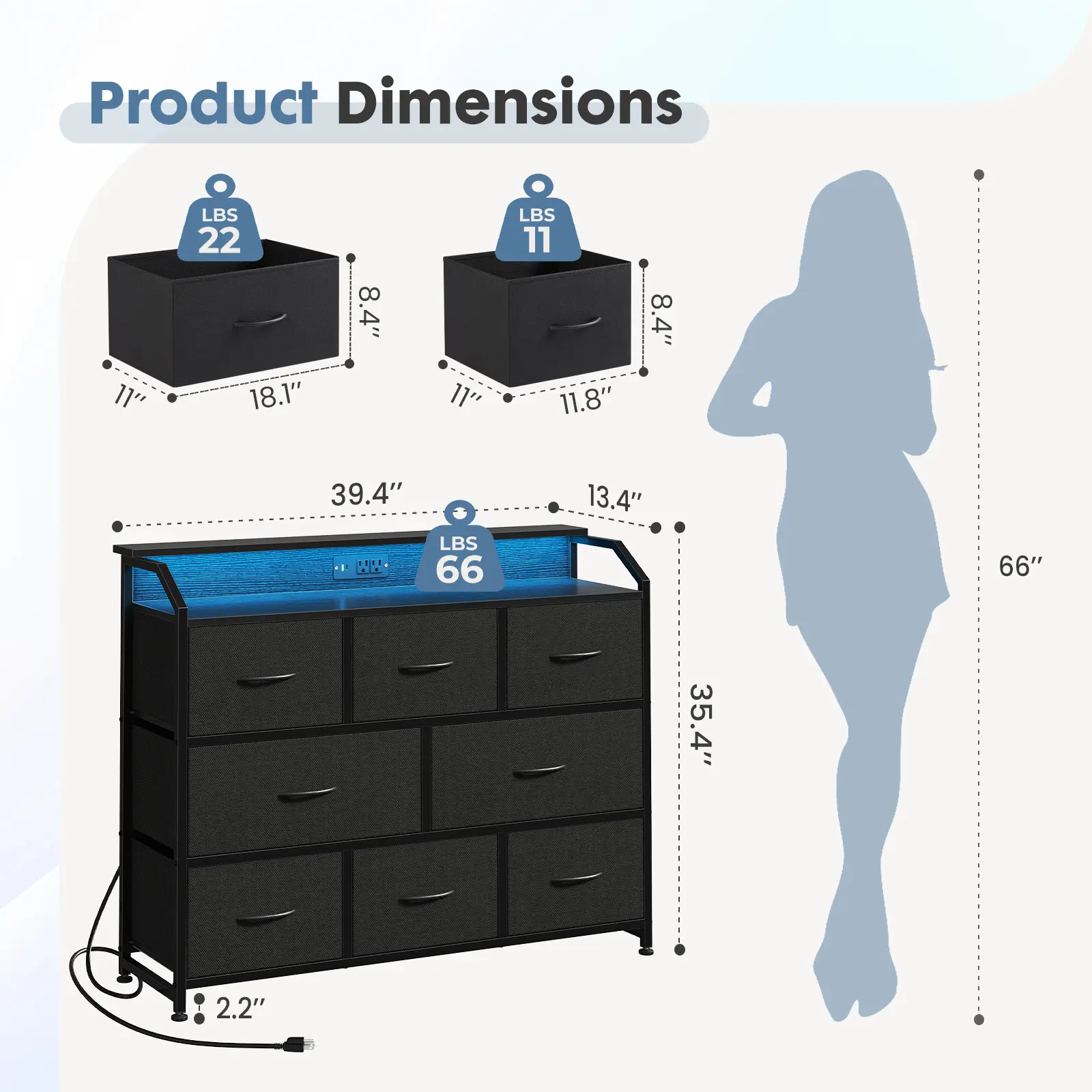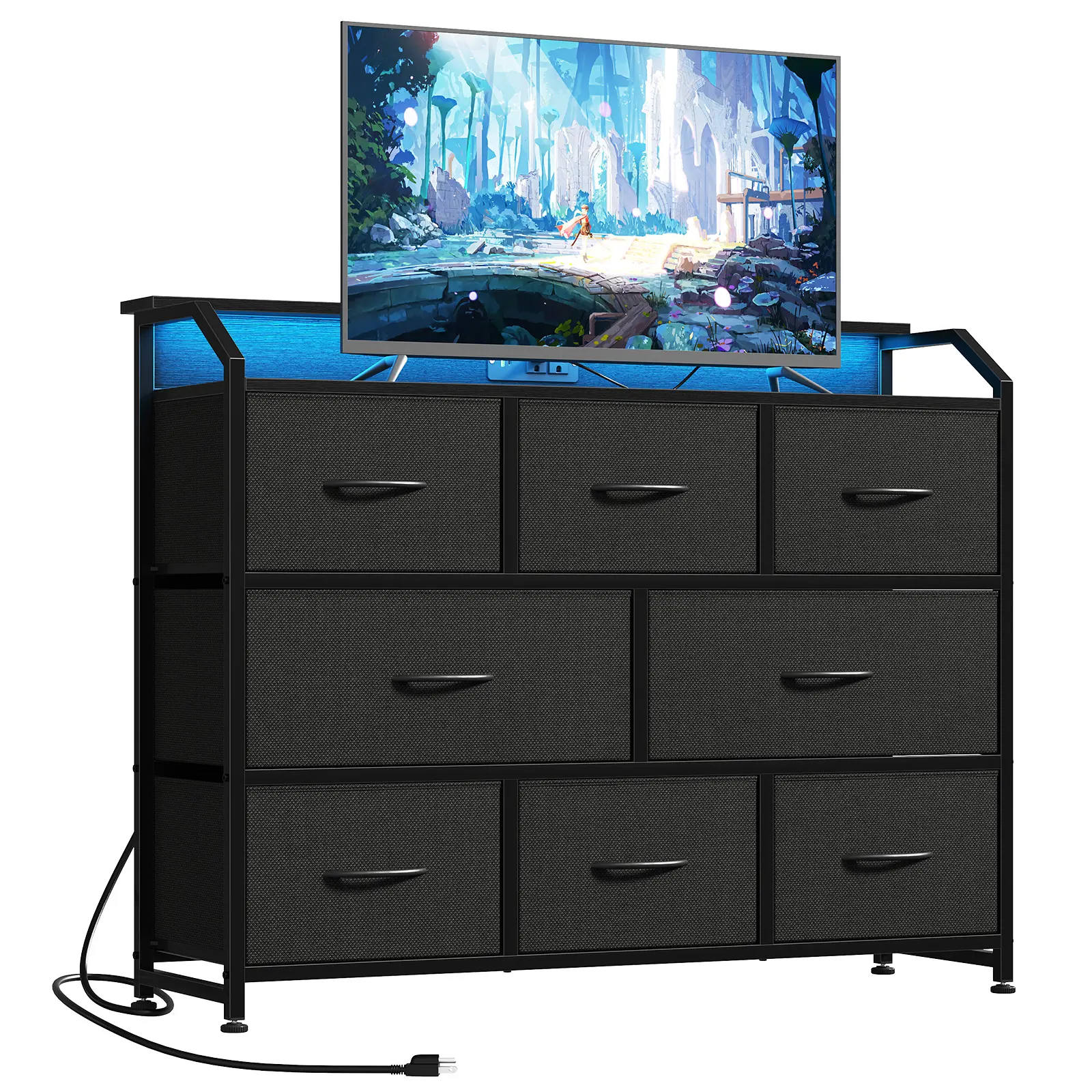 Sweetcrispy 8 Fabric Drawers Dresser with Power Outlets LED Light Multifunctional TV Stand Storage Cabinet for Bedroom Living Room Office Hallway
