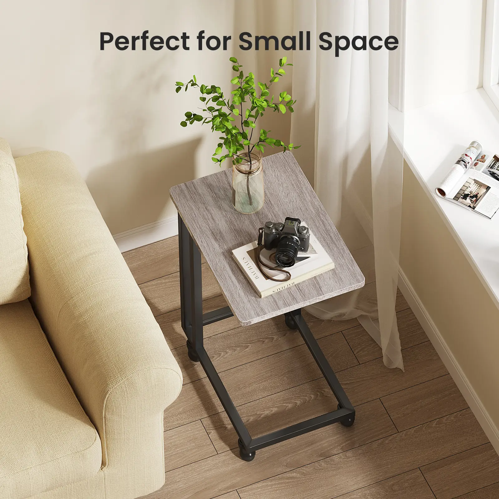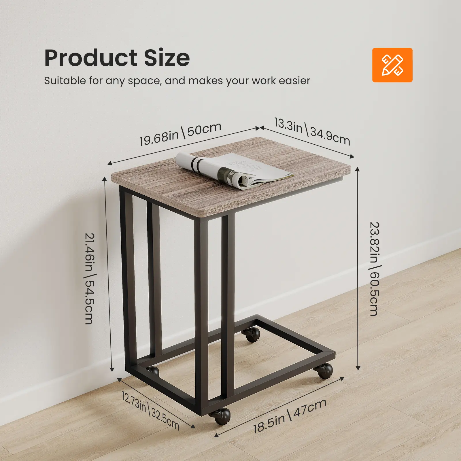 The slim side end table measures 19.69 inches (depth) x 13.78 inches (width) x 23.82 inches (height), making it easy to fit between sofas or by the bed. Use this table to hold onto the side of the sofa or bed, allowing you to conveniently enjoy storage space or workspace, saving space. Each C-shaped table has a large tabletop, which is perfect for laptops, dining tables, or leisure tables. This side table has a simple structure and includes all the necessary parts, allowing you to easily assemble this sofa side table and enjoy a convenient and comfortable experience.