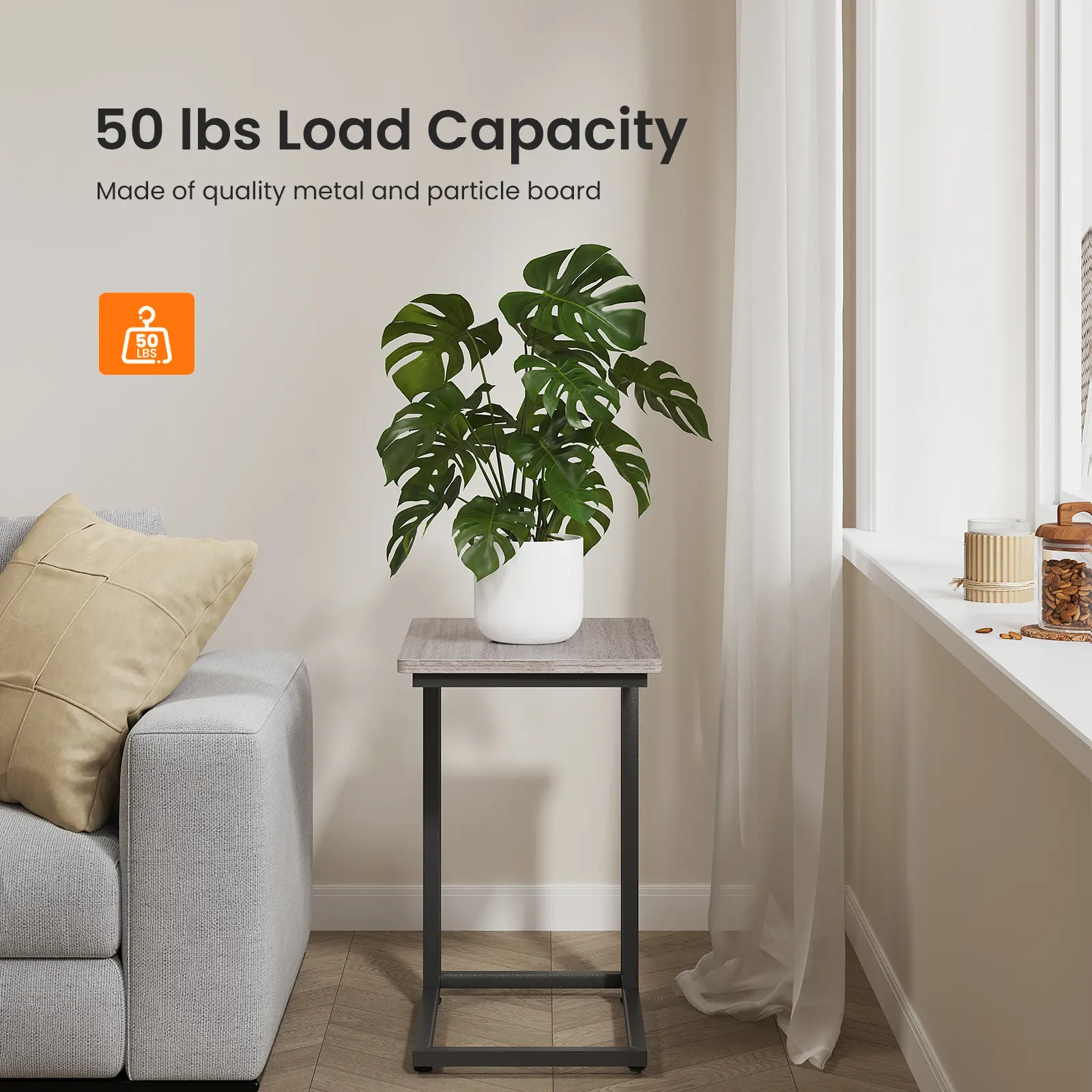 ·【Durable and Long-lasting】This C sofa end table is made of sturdy steel frame and high-quality particle board, ensuring durability and serving you for years to come.