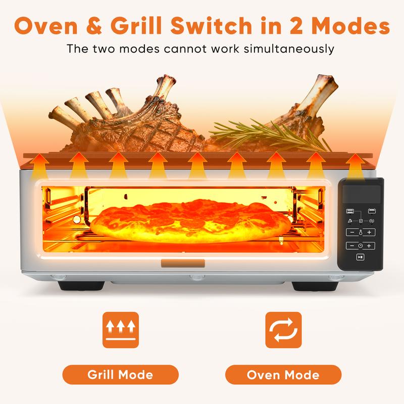 ·Default Presets: 400°F for pizza, 450°F for grilling
