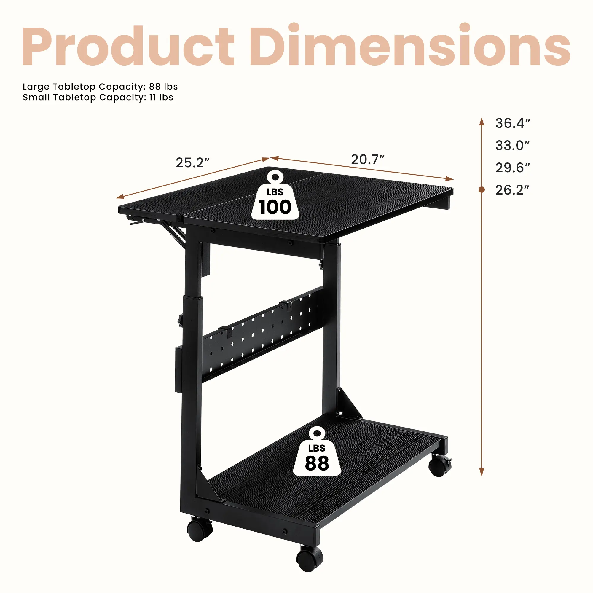 Ergonomic Height Adjustability: Take control of your workspace! This stand easily adjusts from 26" to 32.3", allowing you to find the perfect height to sit flush with your desk or tuck neatly under it. Whether you're using it as a PC tower stand or a mobile side table, it adapts to your needs in seconds.