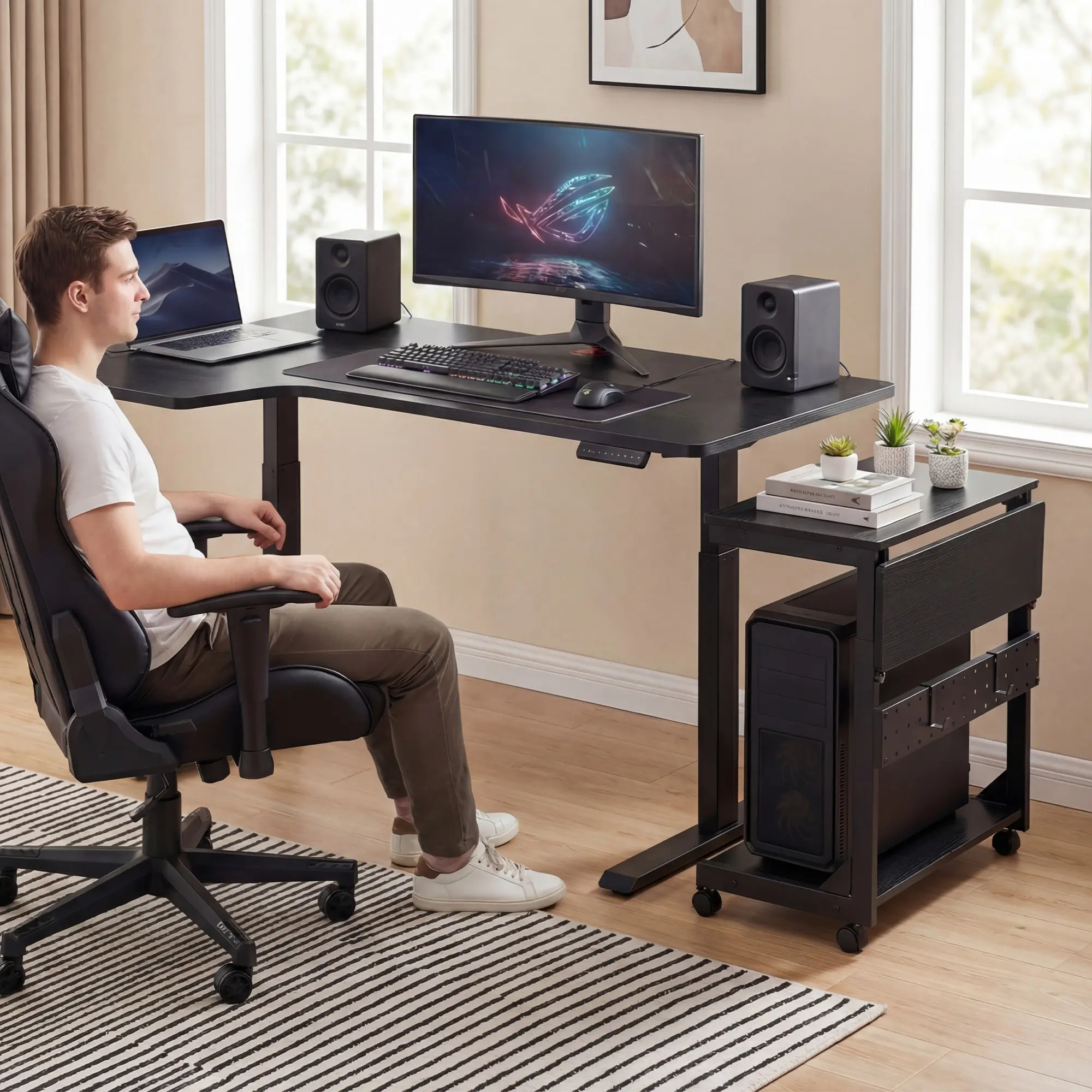 Rock-Solid & Stylish Build: Engineered for durability, this stand features a high-quality P2 particle board top that is water-resistant and anti-scratch, paired with a heavy-duty carbon steel frame. The sleek, modern finish and smooth edge banding ensure it looks just as good in a professional office as it does in a gaming room.