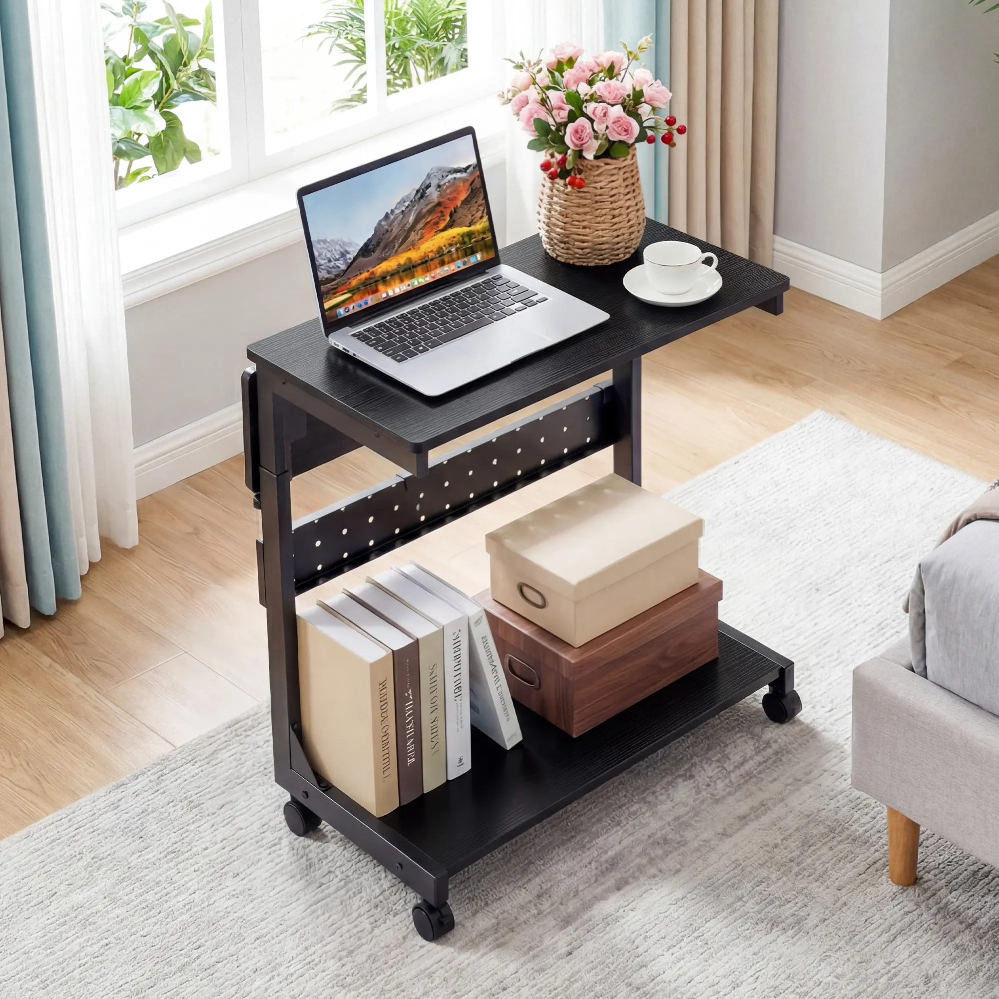 Space-Saving 2-Tier Storage: Maximize your square footage. The heavy-duty 2-tier design offers ample room for your computer tower, printer, or a stack of textbooks on the bottom, while the top surface serves as the perfect home for your coffee, snacks, or tablet. It’s the ultimate "sidekick" for small apartments or dorm rooms.