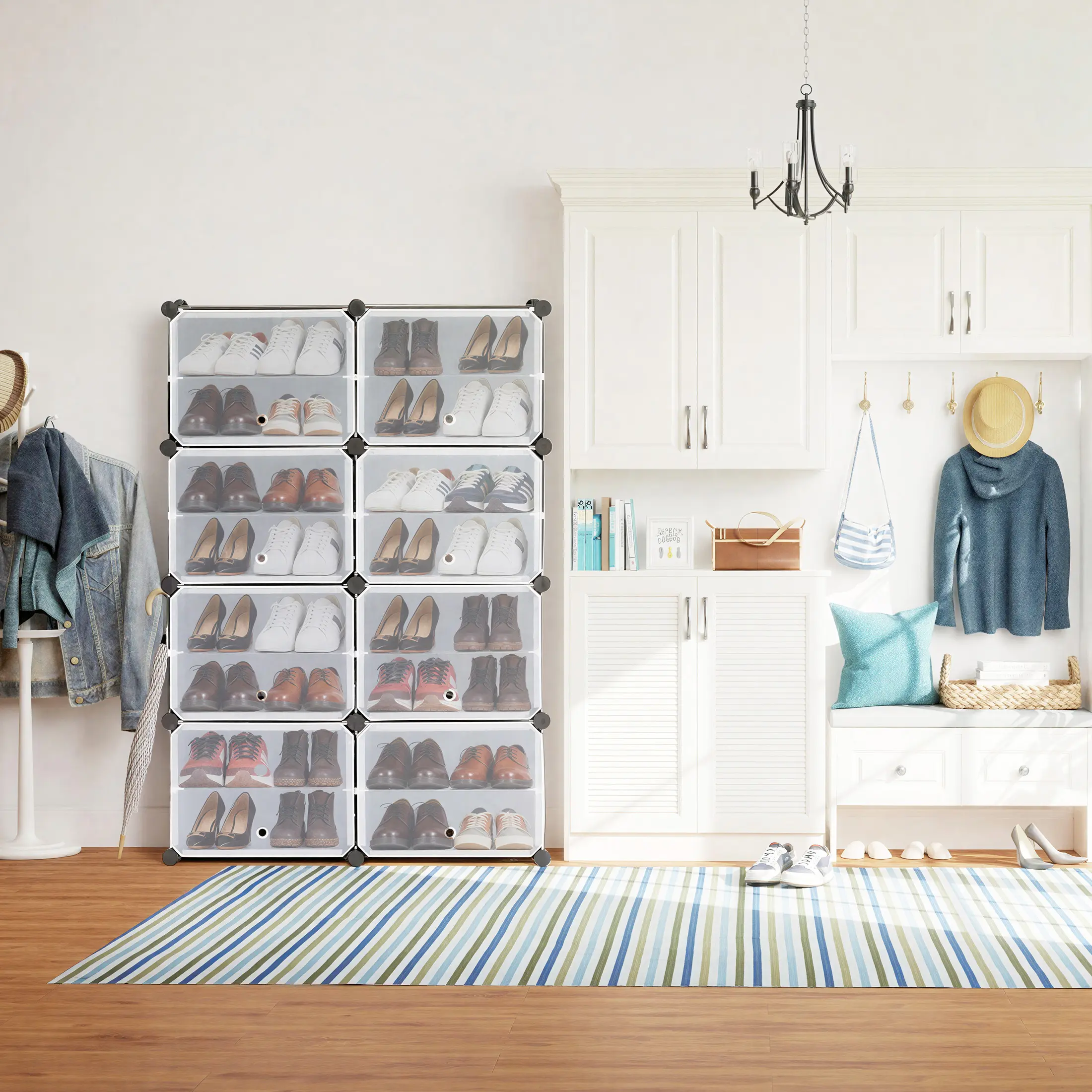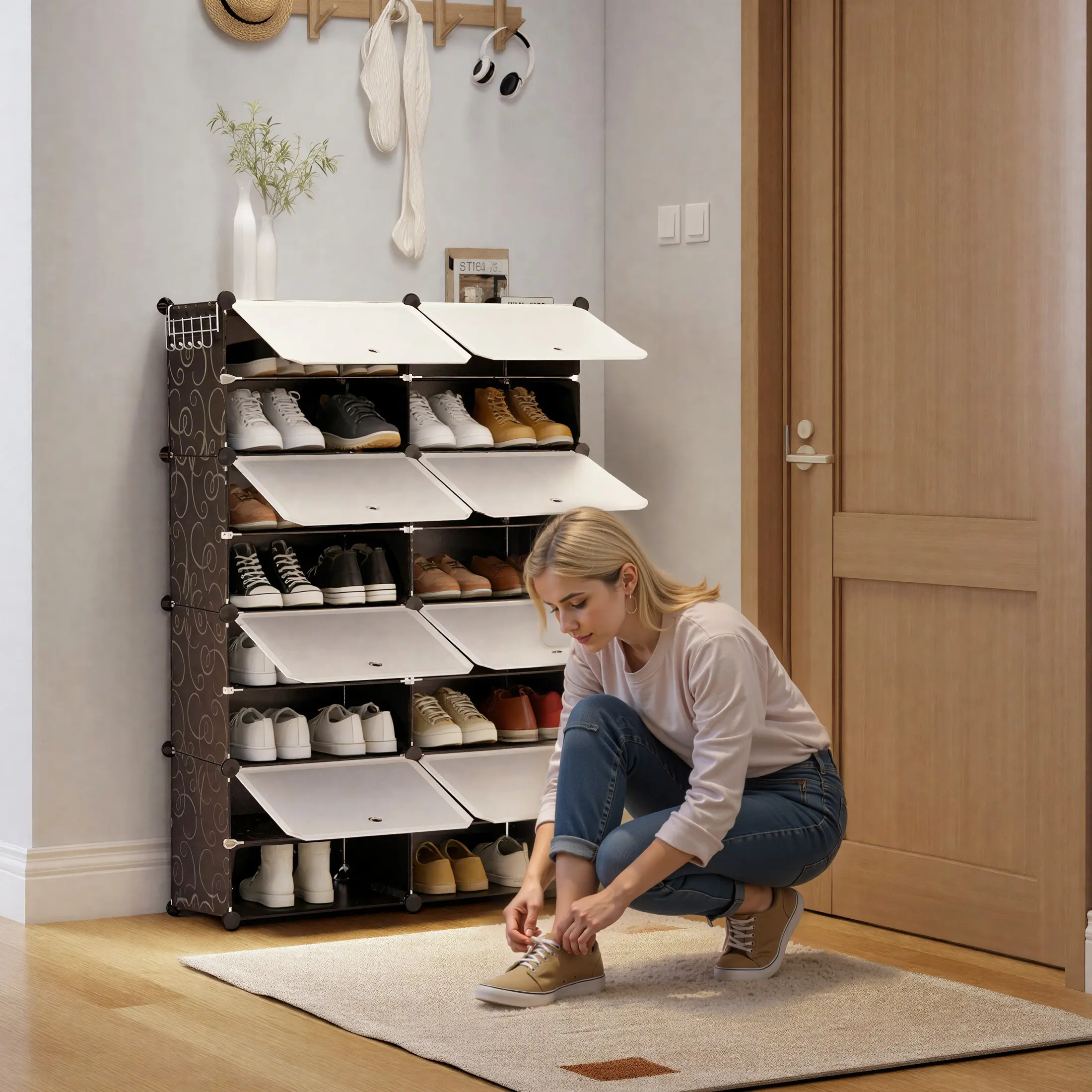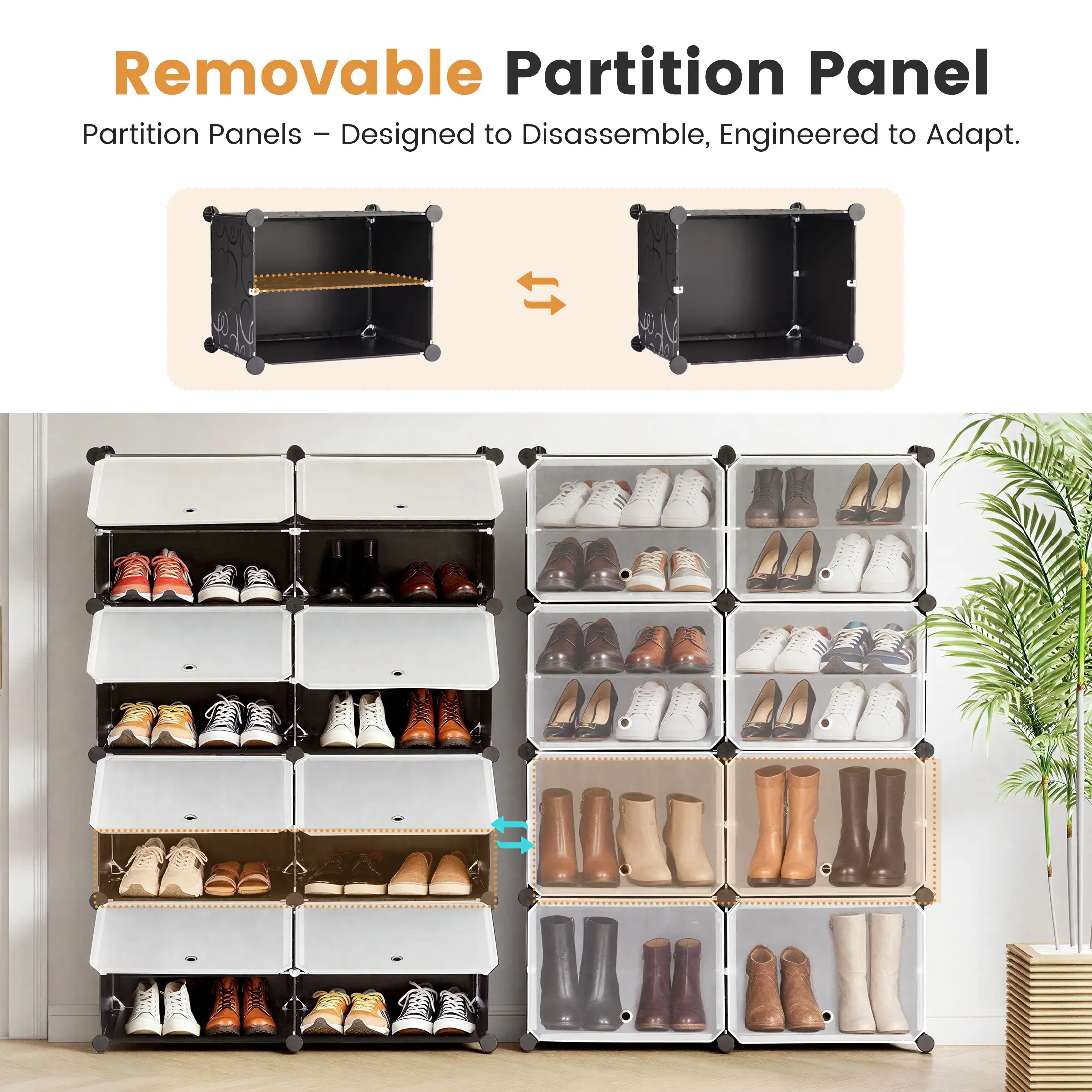 ·[Sturdy&Durable] The rack is made from sturdy PP plastic panels, a metal frame, and ABS connectors. This makes it durable. You can place it in your closet, living room, hallway, bedroom, or office to keep things tidy.