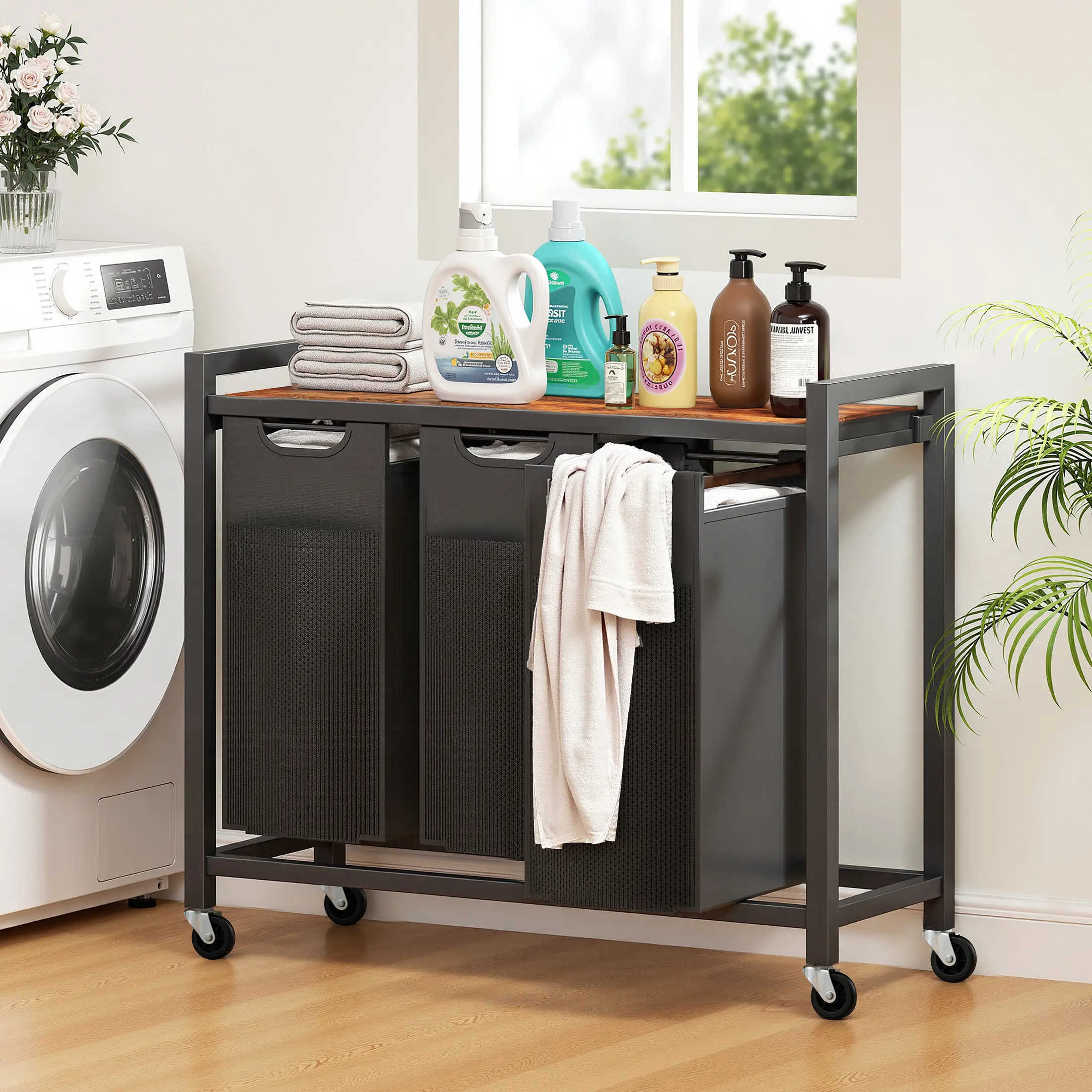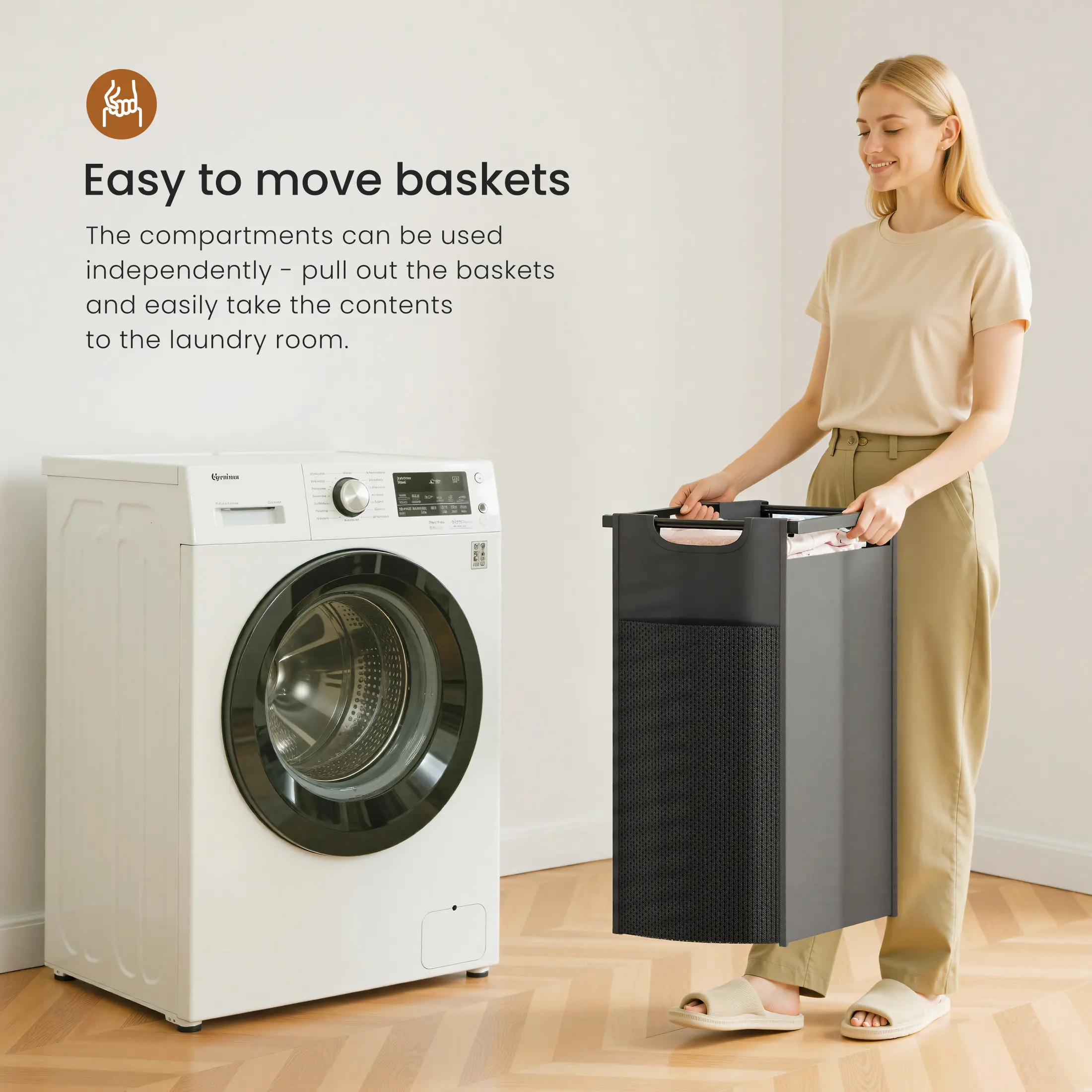 No more heavy lifting! Each laundry bag slides out smoothly and detaches easily with Velcro closures. Sturdy side handles make it simple to carry clothes directly to the washing machine. The reinforced bottom panel keeps the bag upright and stable, even when fully loaded.