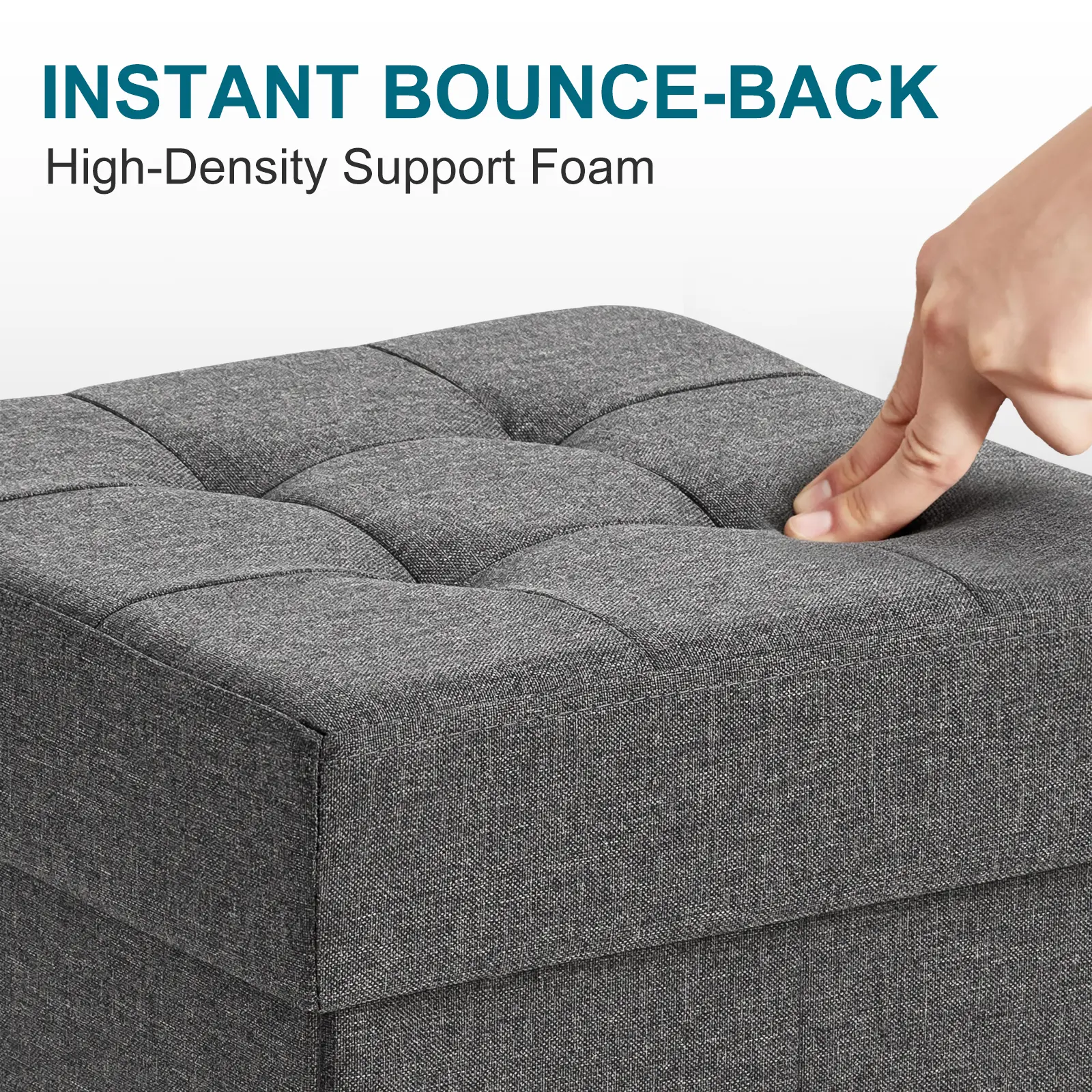 1.Sleek Design: This storage ottoman features a modern, tufted fabric design in a neutral gray color that effortlessly blends with any home decor style.