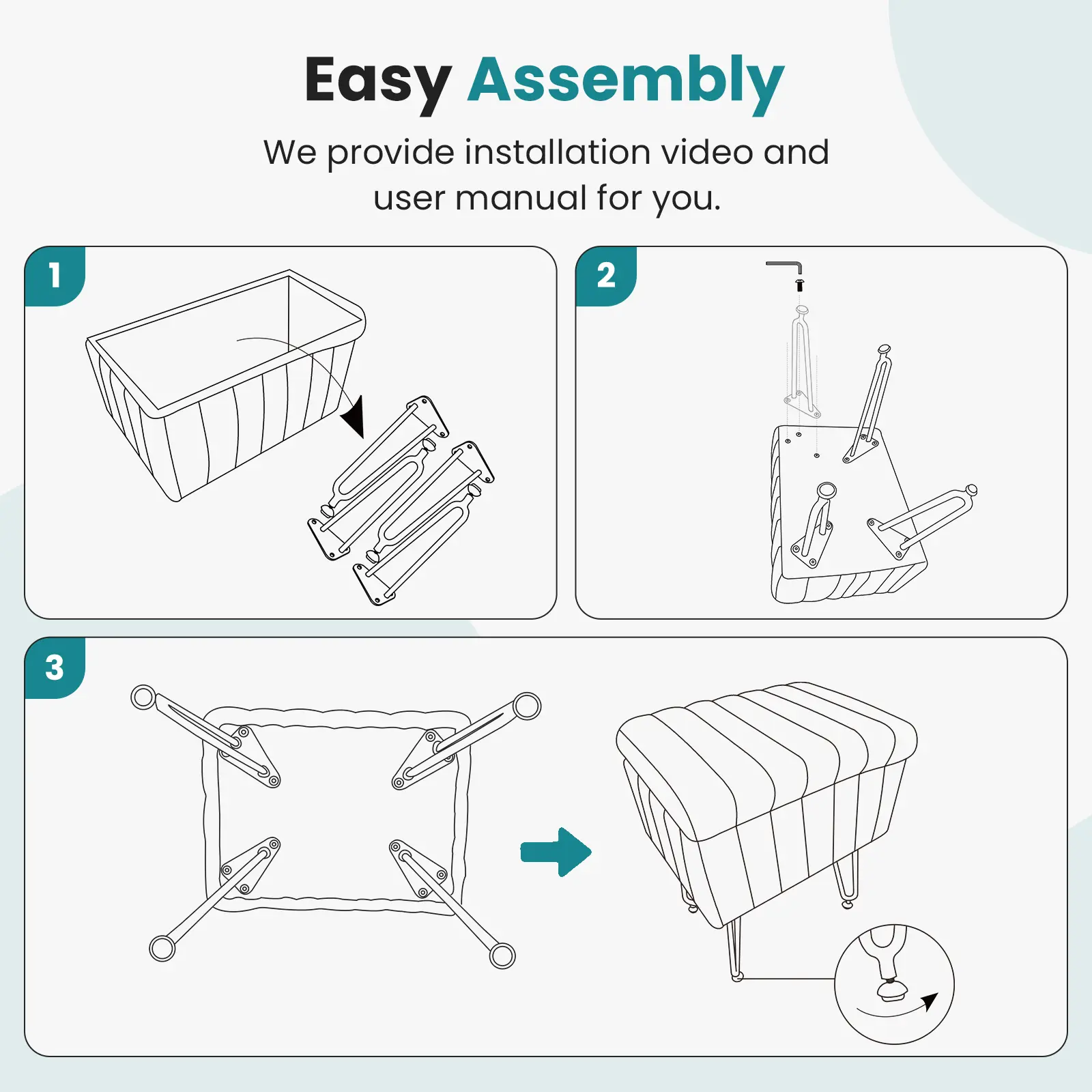 ·【Easy Assembly】: It’s very easy to assemble this storage stool makeup stool. Simply install the 4 stool legs and adjust the height of the feet to fit the floor, completing the setup in under 20 minutes!
